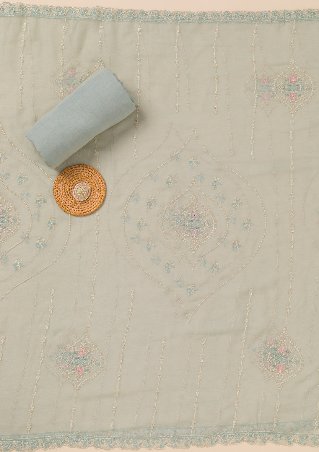 Sky Blue Zariwork Georgette Unstitched Salwar Suit