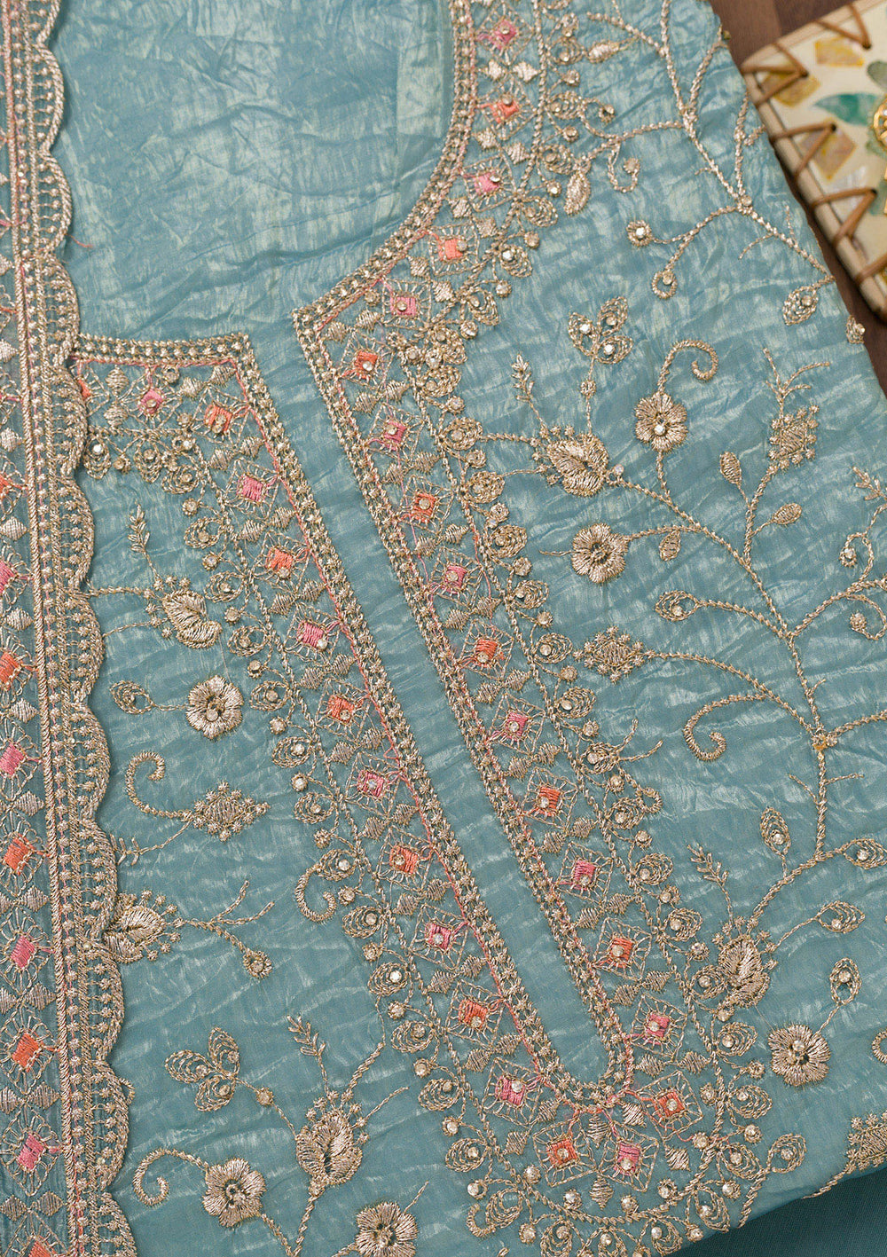 Sky Blue Zariwork Tissue Unstitched Salwar Suit