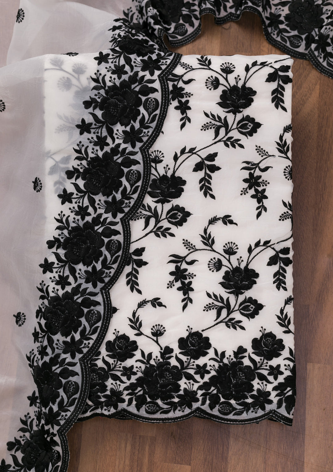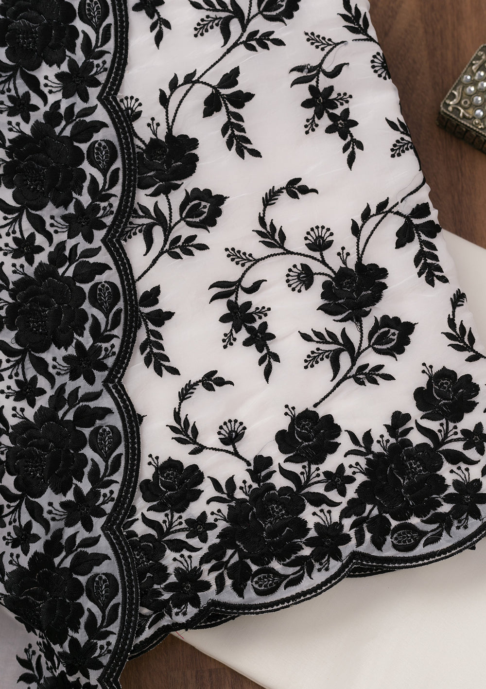 White Salwar Suit in Tissue fabric. The Salwar Suit is embellished with Threadwork embroidery. Accompanied with a bottom and dupatta. Comes with the Koskii promise of premium quality.