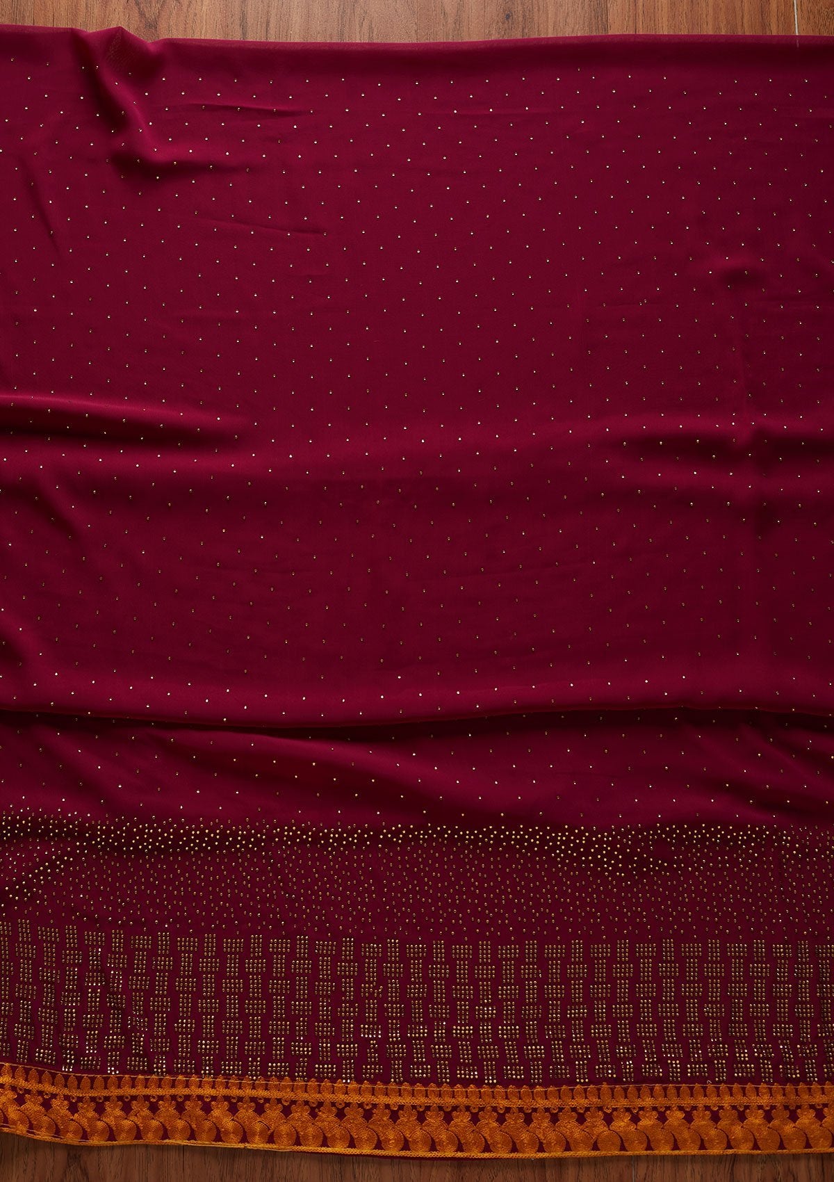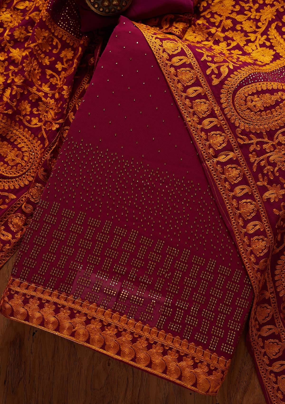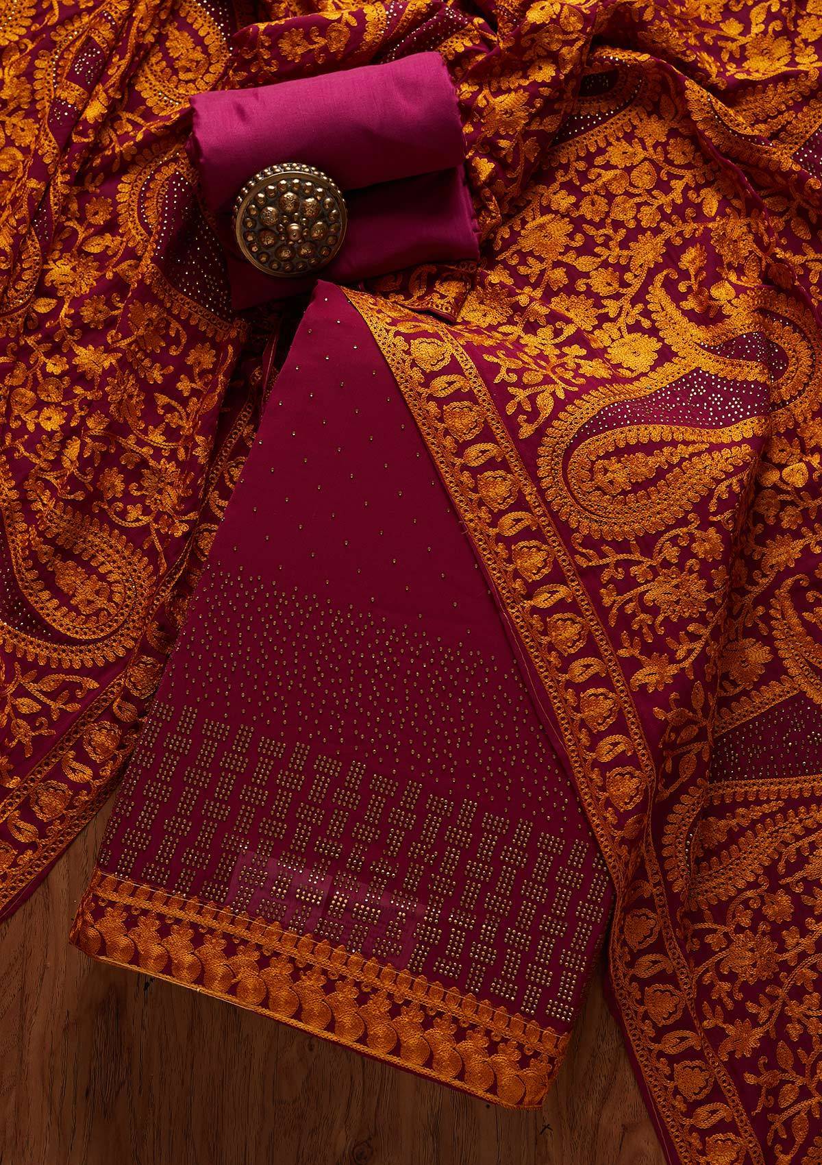 Wine Swarovski Georgette Unstitched Salwar Suit