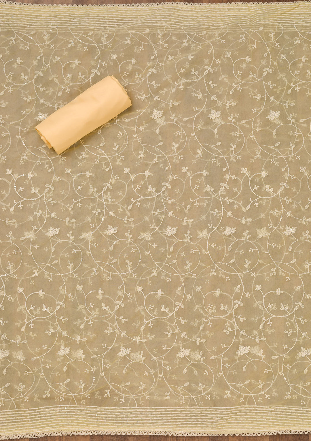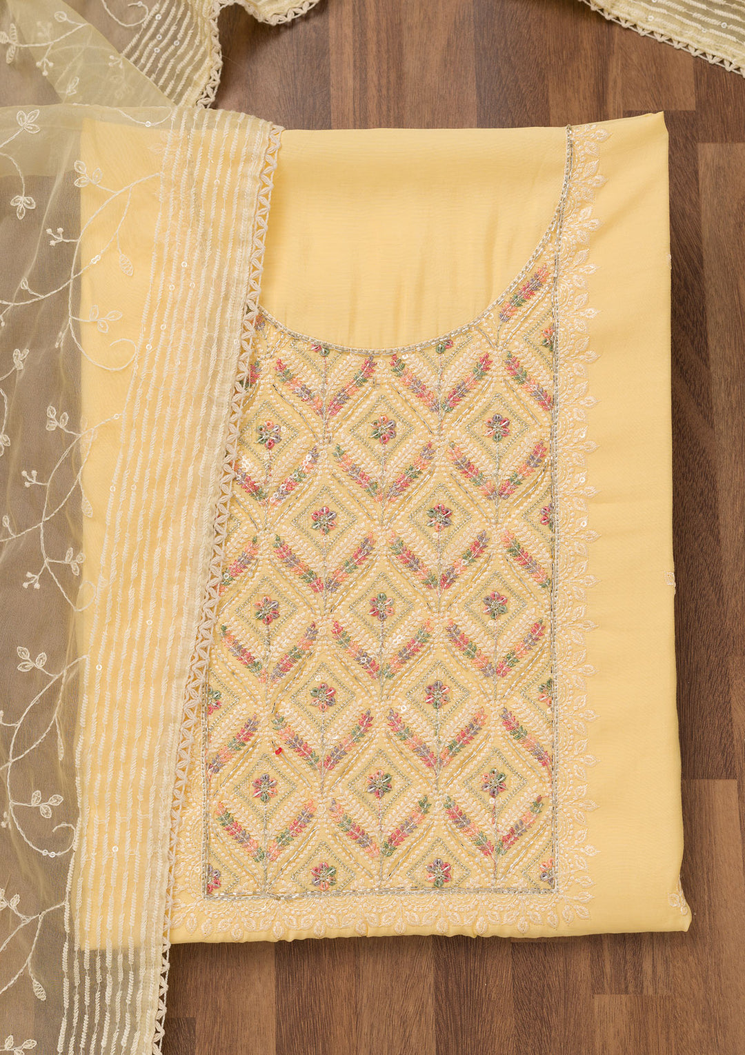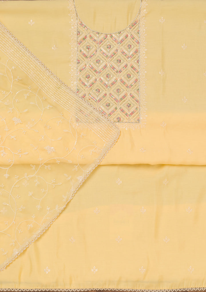 Yellow Threadwork Chanderi Unstitched Salwar Suit
