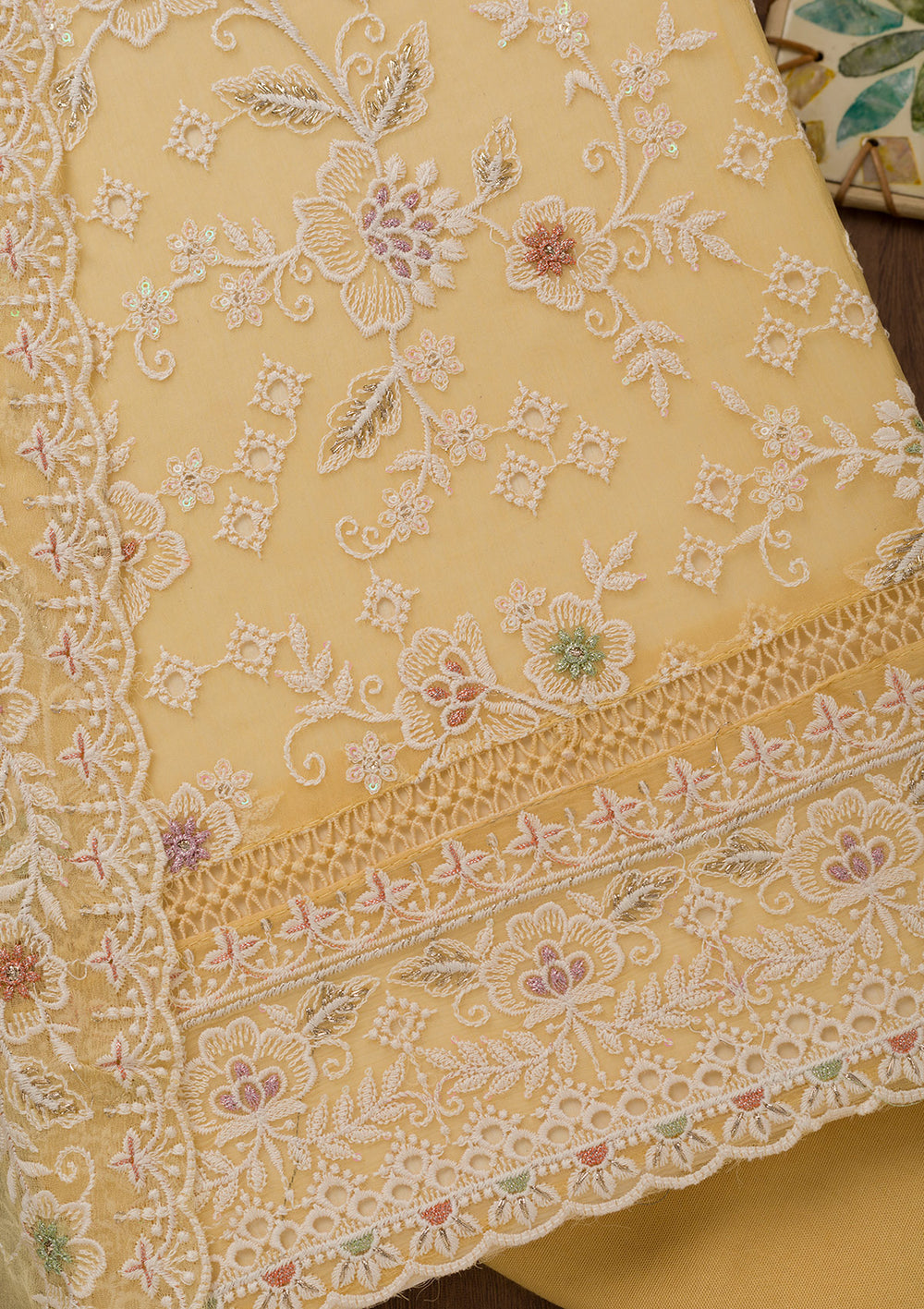 Yellow Threadwork Chiffon Unstitched Salwar Suit