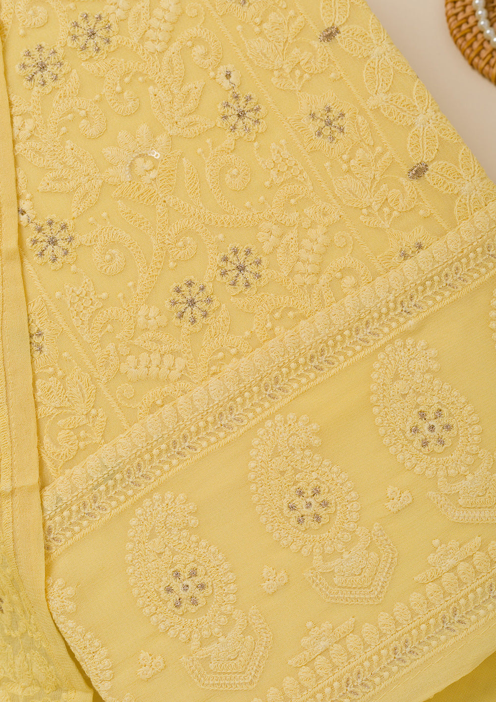 Yellow Threadwork Georgette Unstitched Salwar Suit