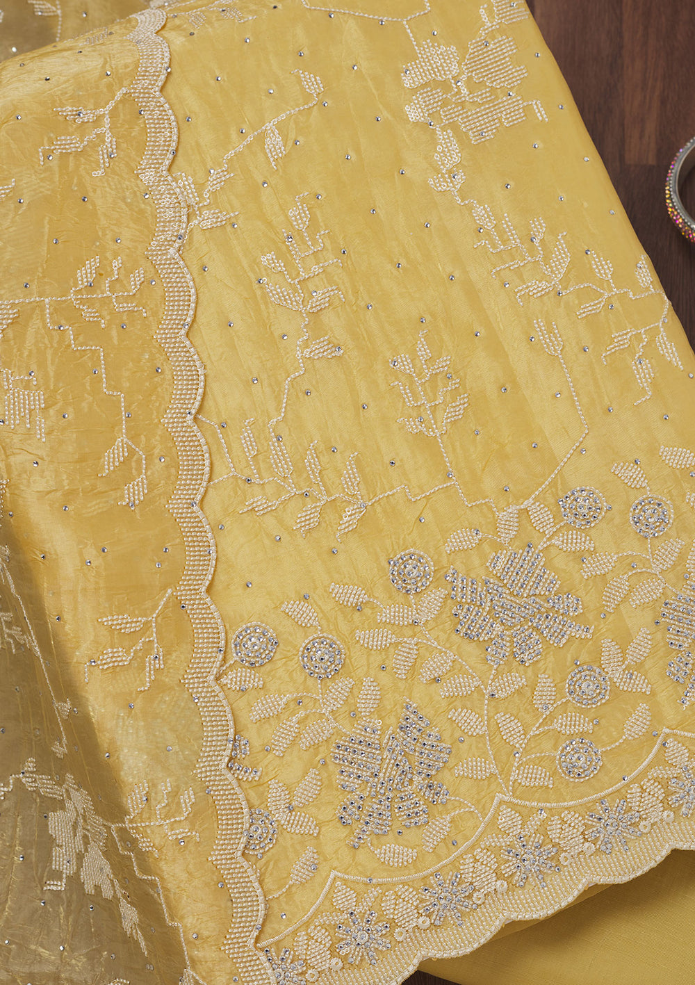 Yellow Threadwork Shimmer Unstitched Salwar Suit