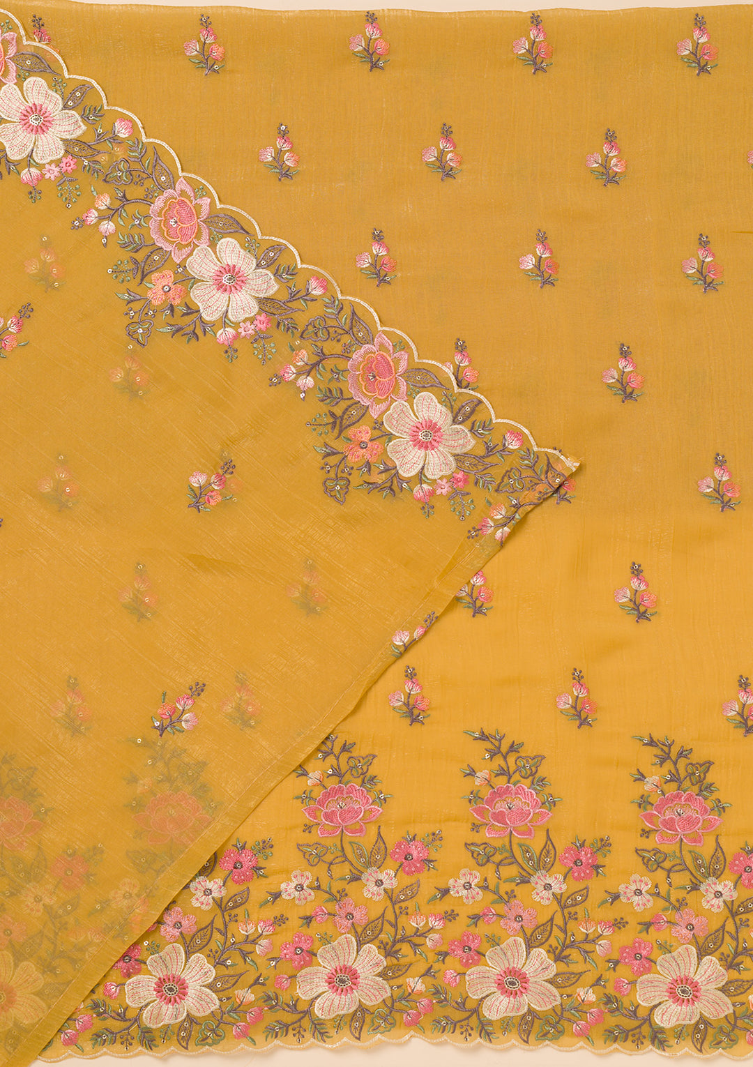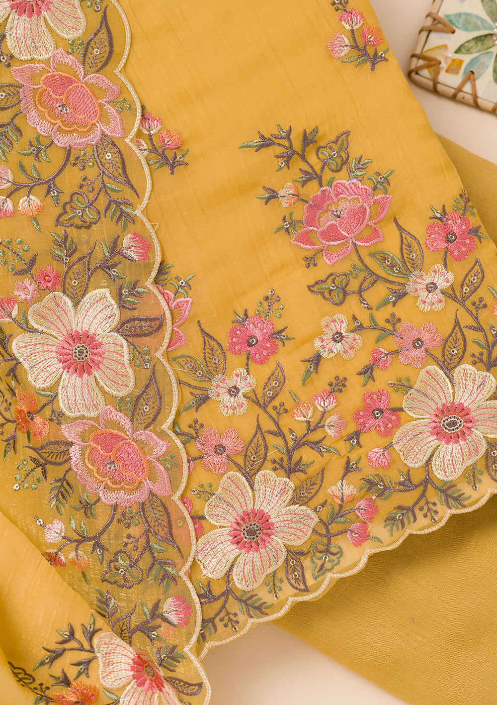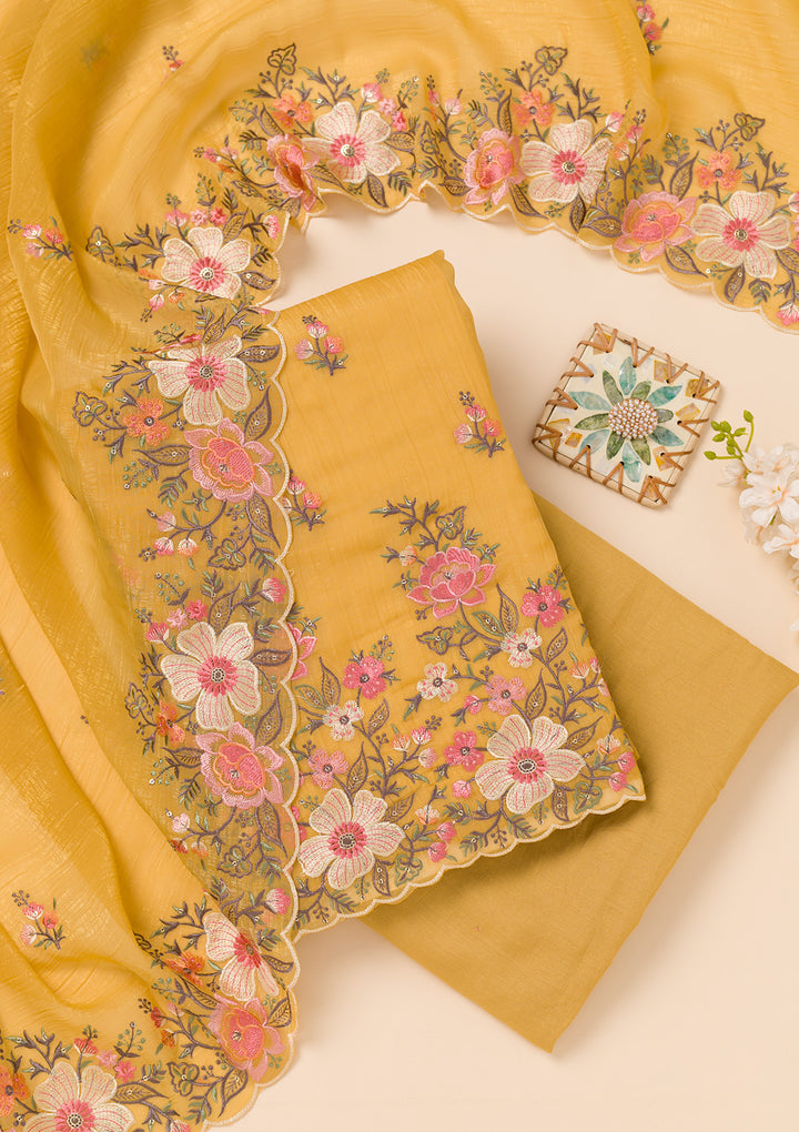 Yellow Threadwork Tissue Unstitched Salwar Suit