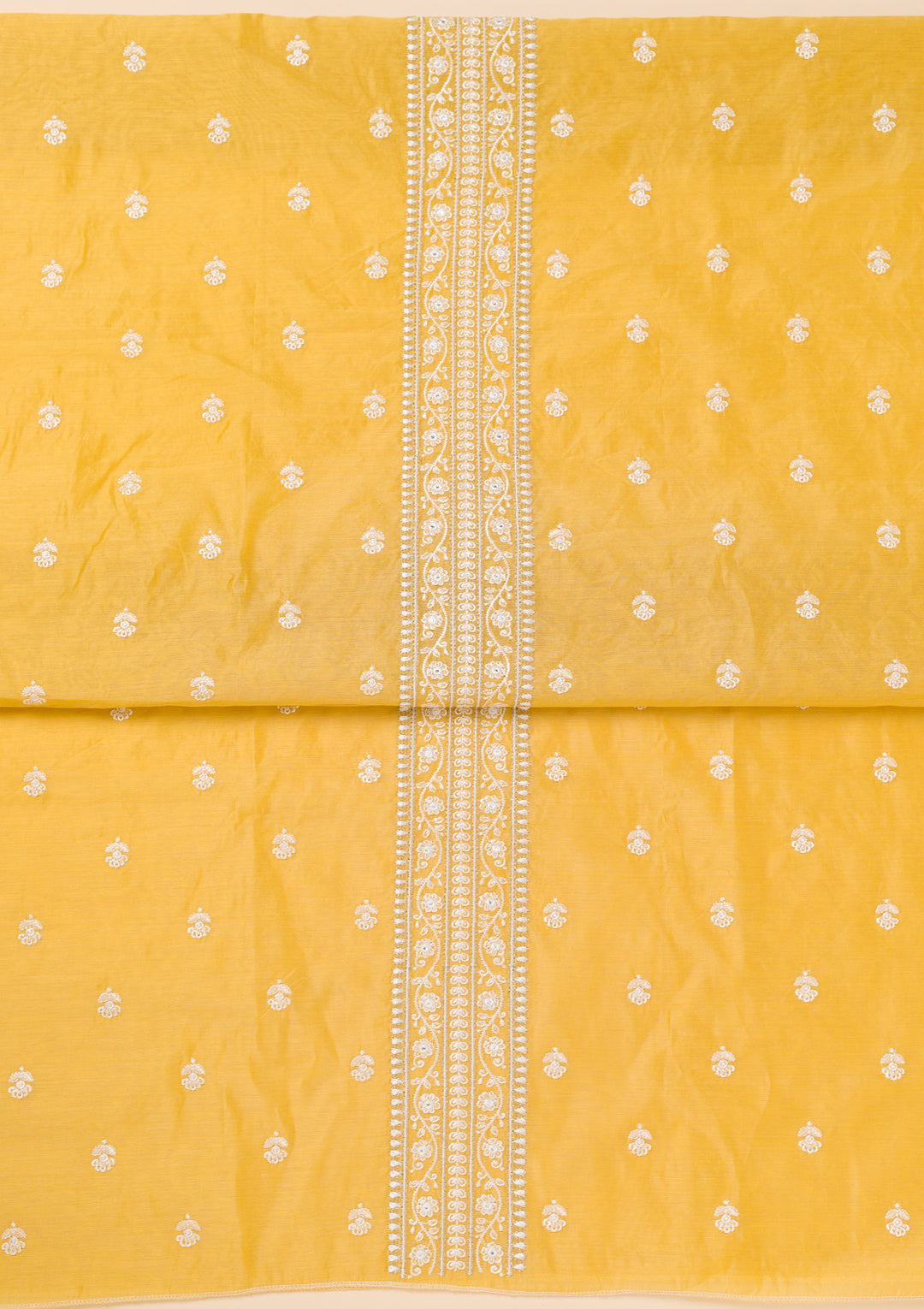 Yellow Zariwork Chanderi Unstitched Salwar Suit