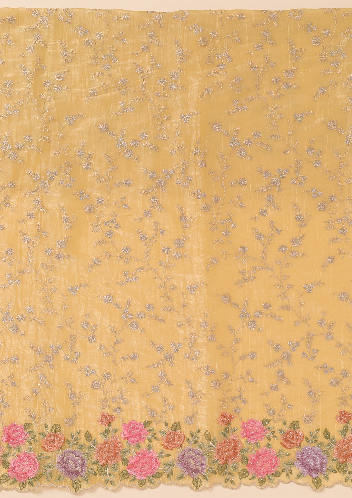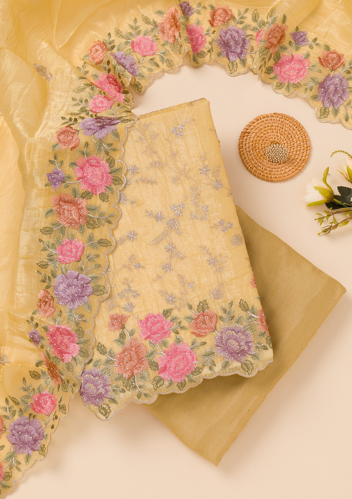 Yellow Zariwork Semi Crepe Unstitched Salwar Suit