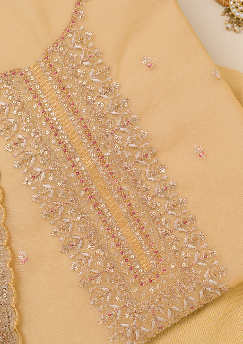 Yellow Zariwork Art Silk Unstitched Salwar Suit