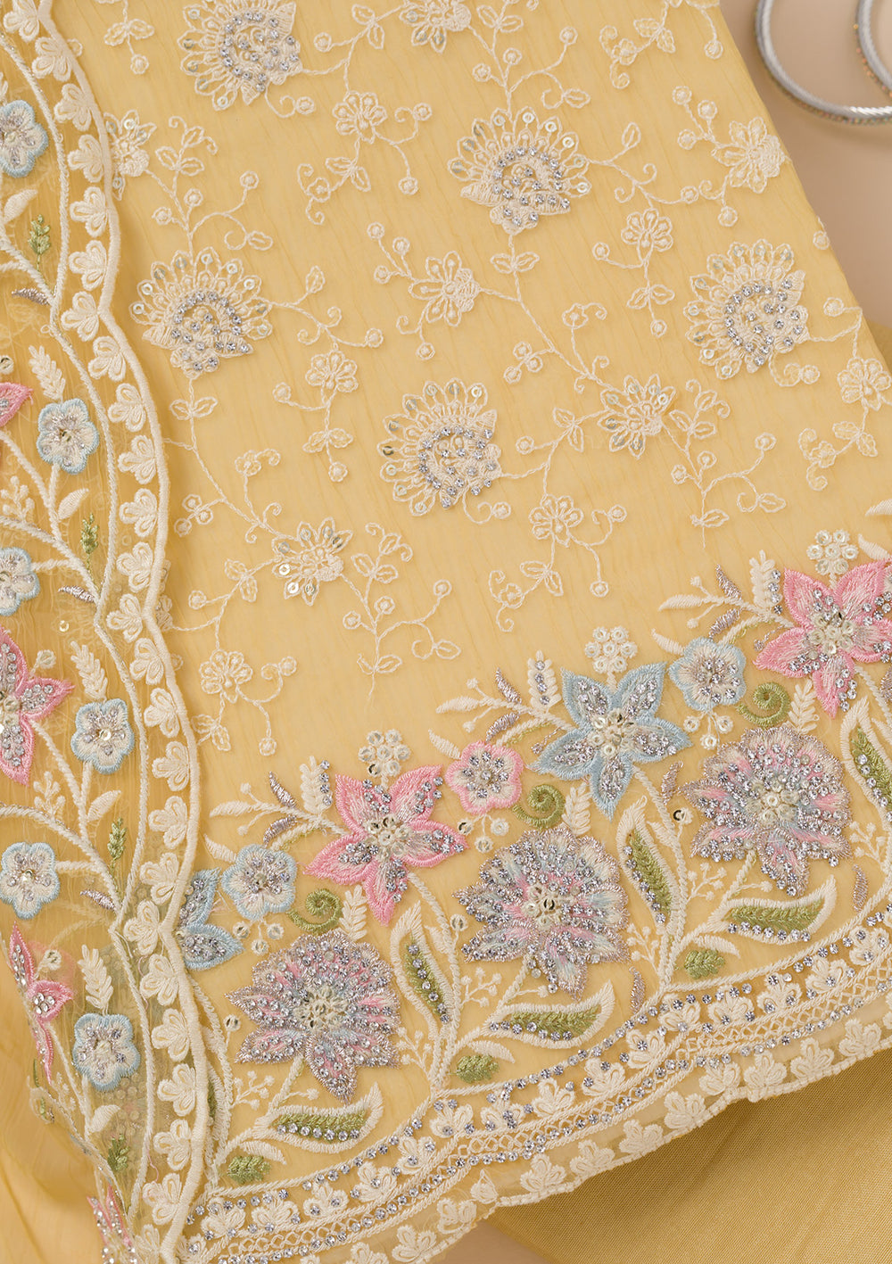 Yellow Zariwork Tissue Unstitched Salwar Suit