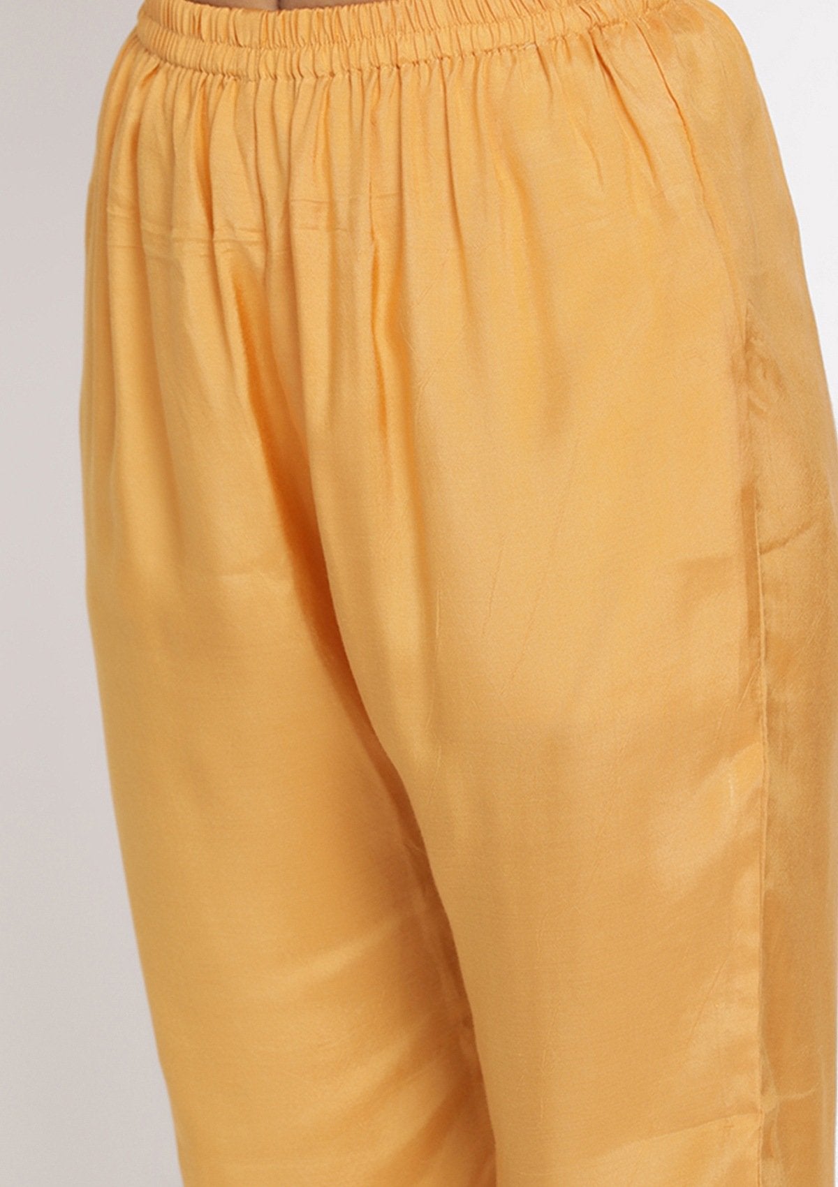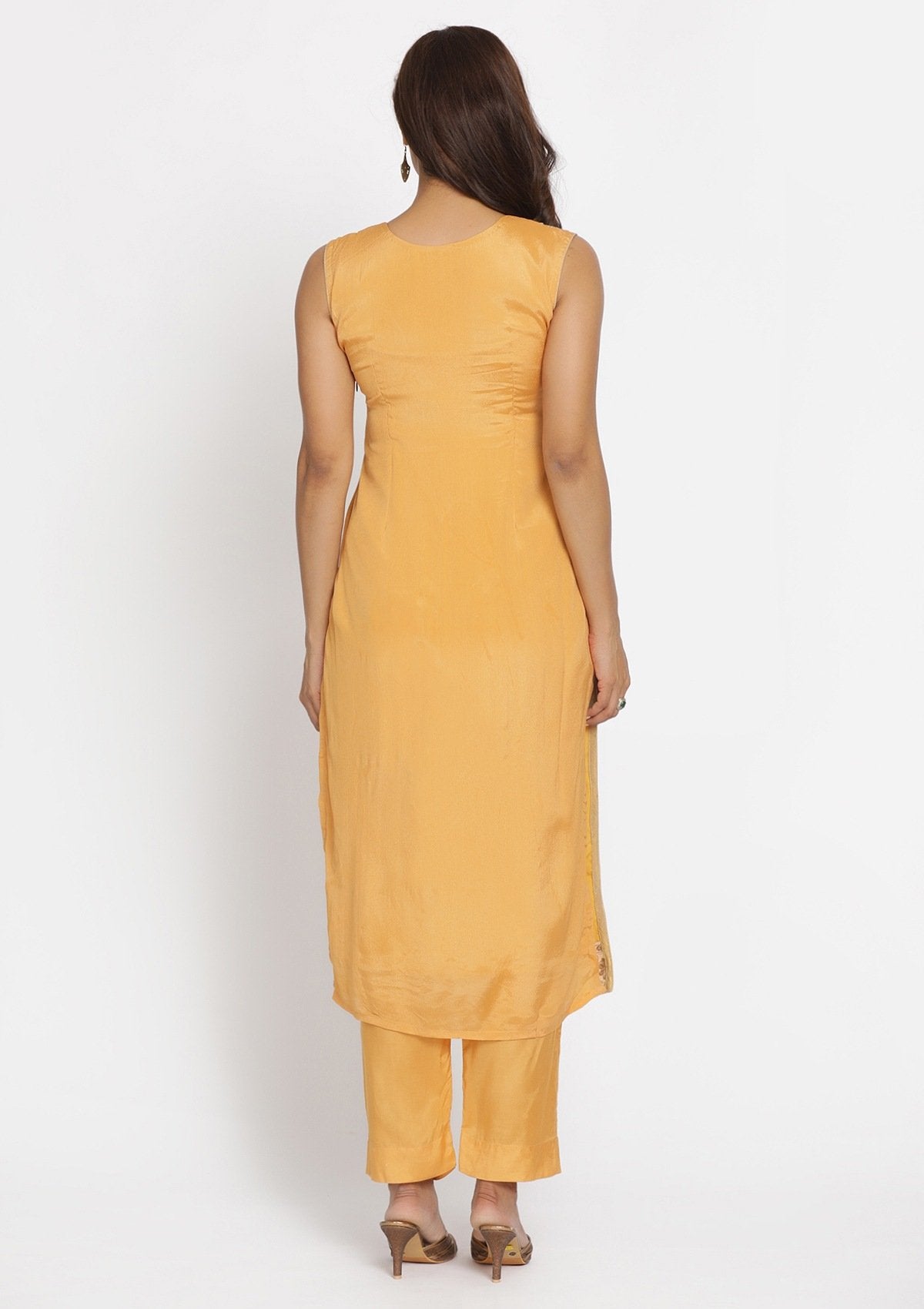 - Mustard Unstitched Salwar Suit in Semi Crepe Fabric