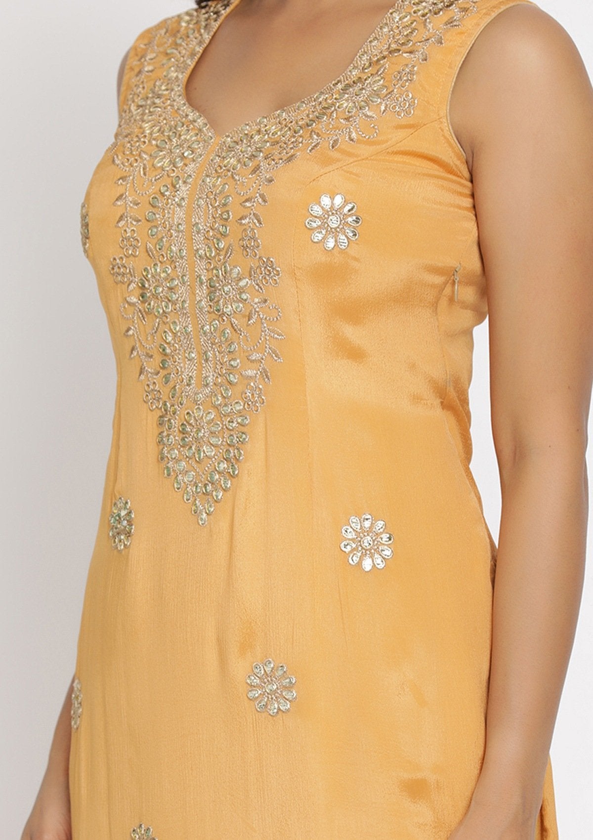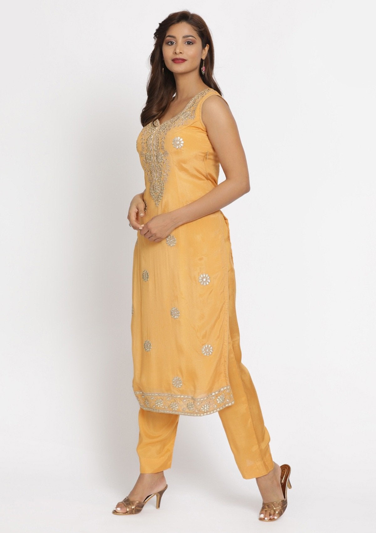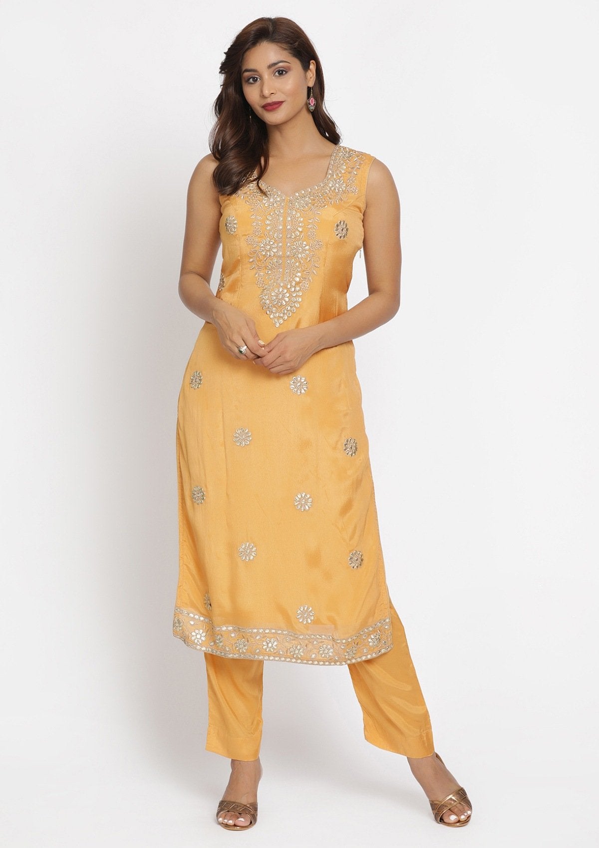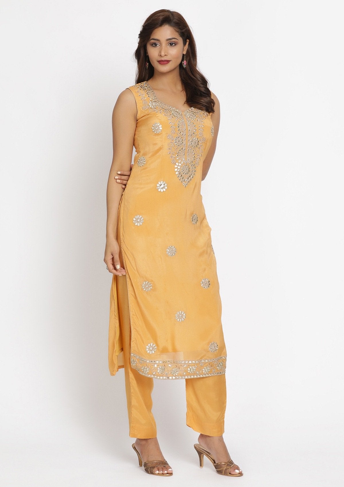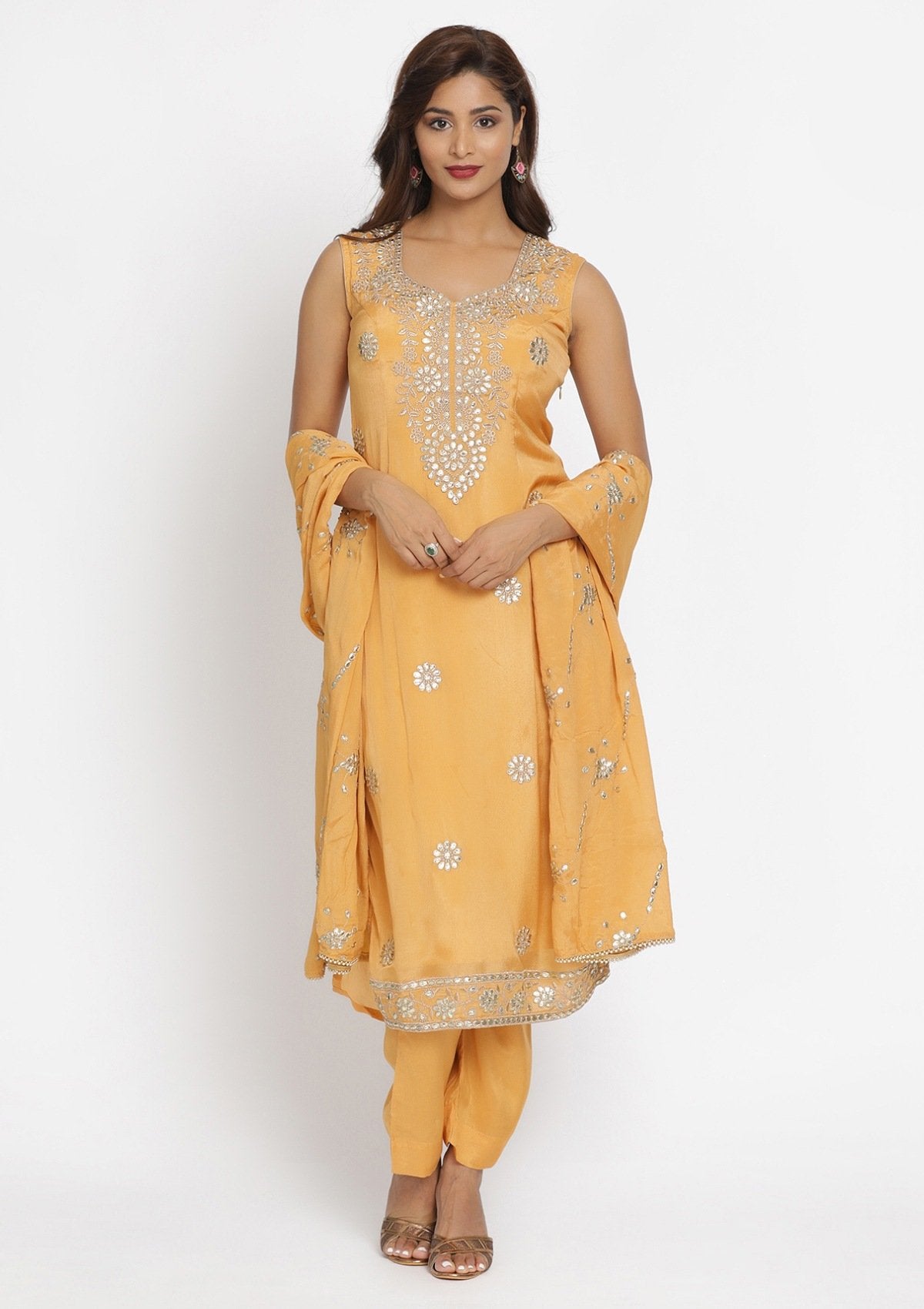 Mustard Gotapatti Semi Crepe Unstitched Salwar Suit