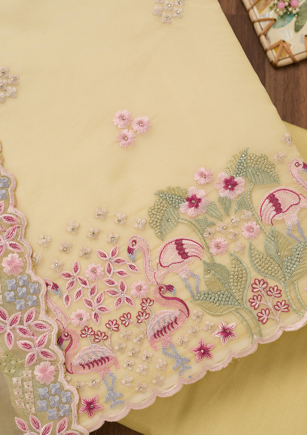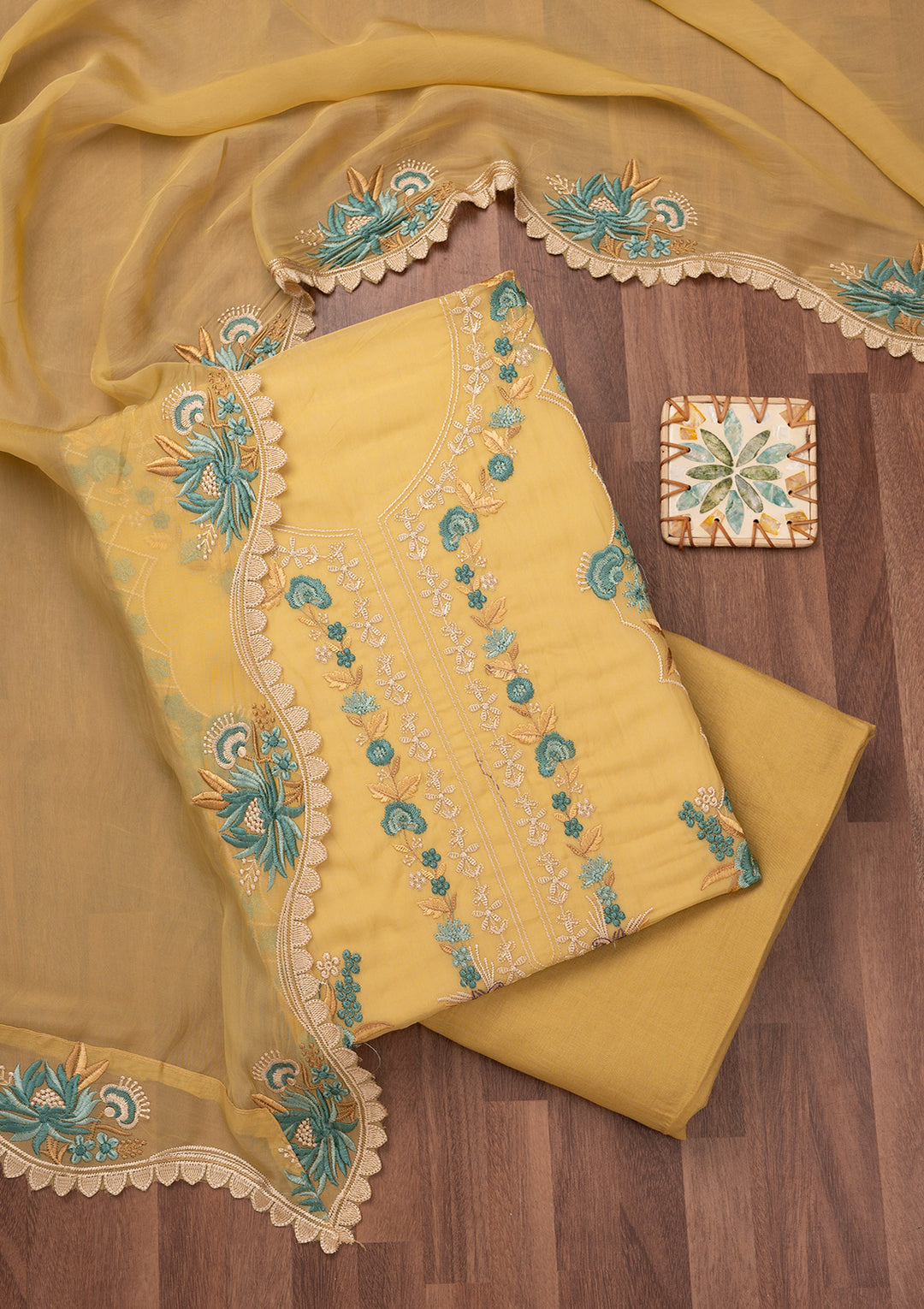 | Yellow Threadwork Semi Crepe Unstitched Salwar Suit | ₹ 2,994 | |