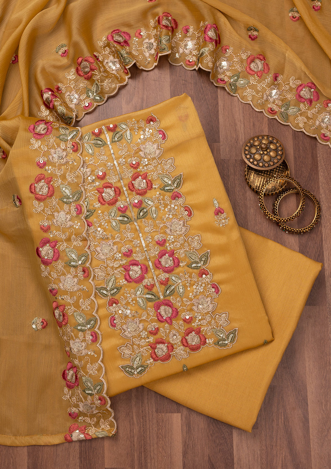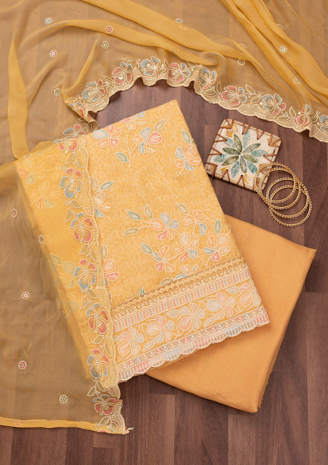 | Yellow Threadwork Tissue Unstitched Salwar Suit | ₹ 2,694 | |