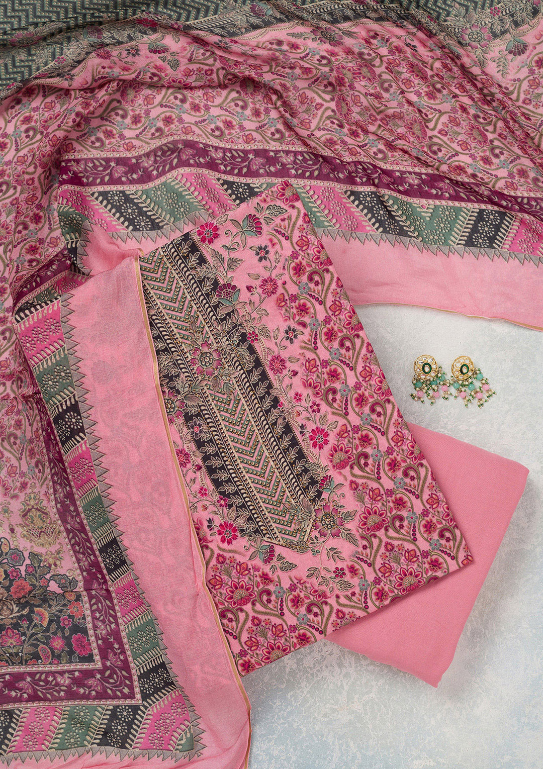 | Pink Zariwork Semi Crepe Unstitched Salwar Suit | ₹ 1,992 | |