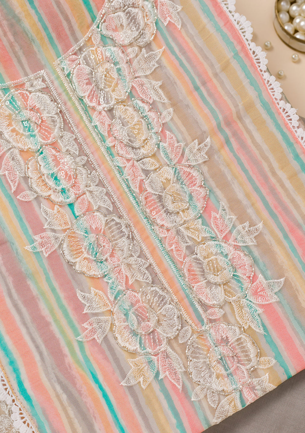 | Multi Zariwork (Gold) Organza Unstitched Salwar Suit | ₹ 1,992 | |