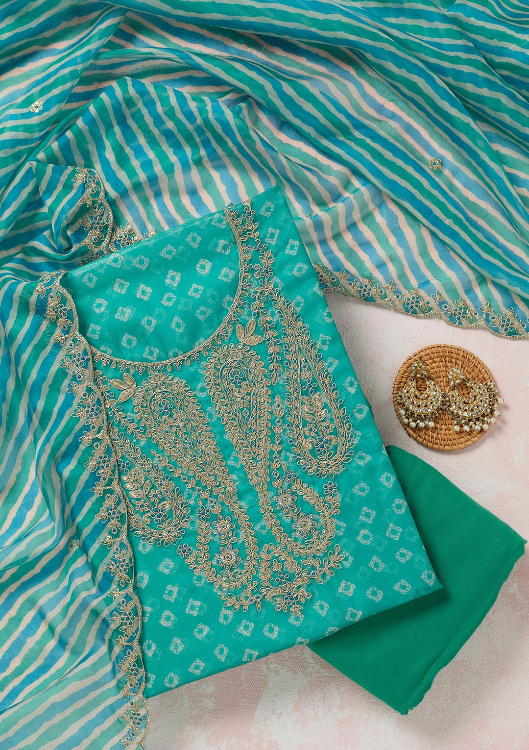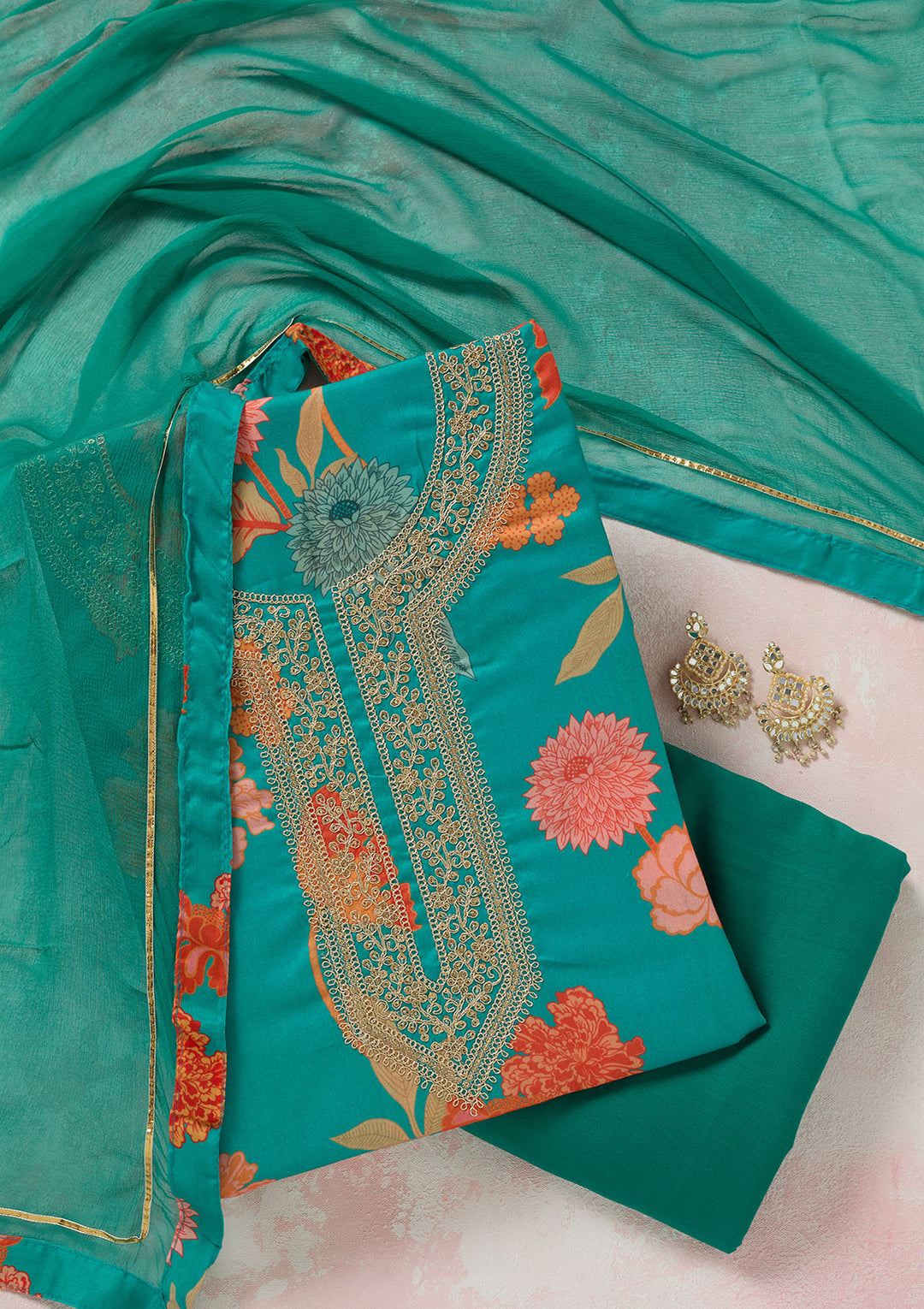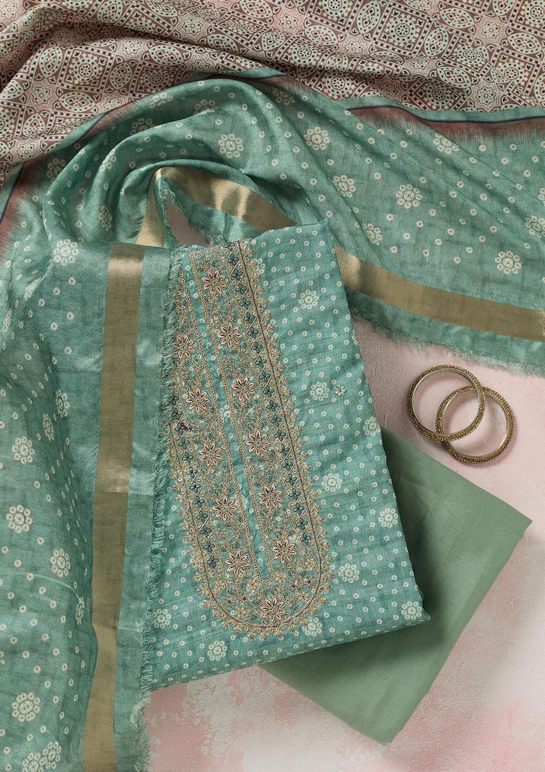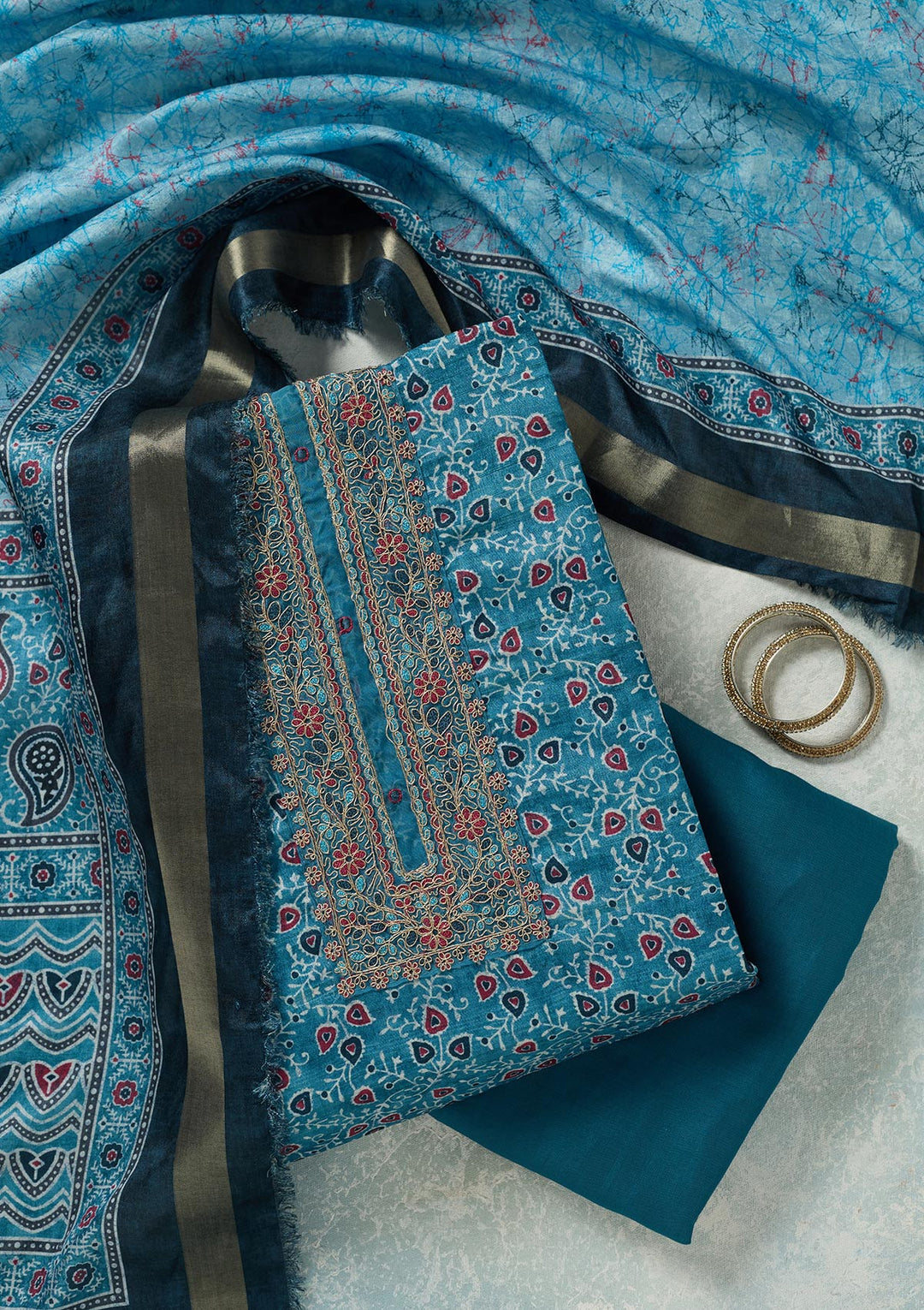 | Sky Blue Zariwork (Gold) Cotton Unstitched Salwar Suit | ₹ 1,992 | |