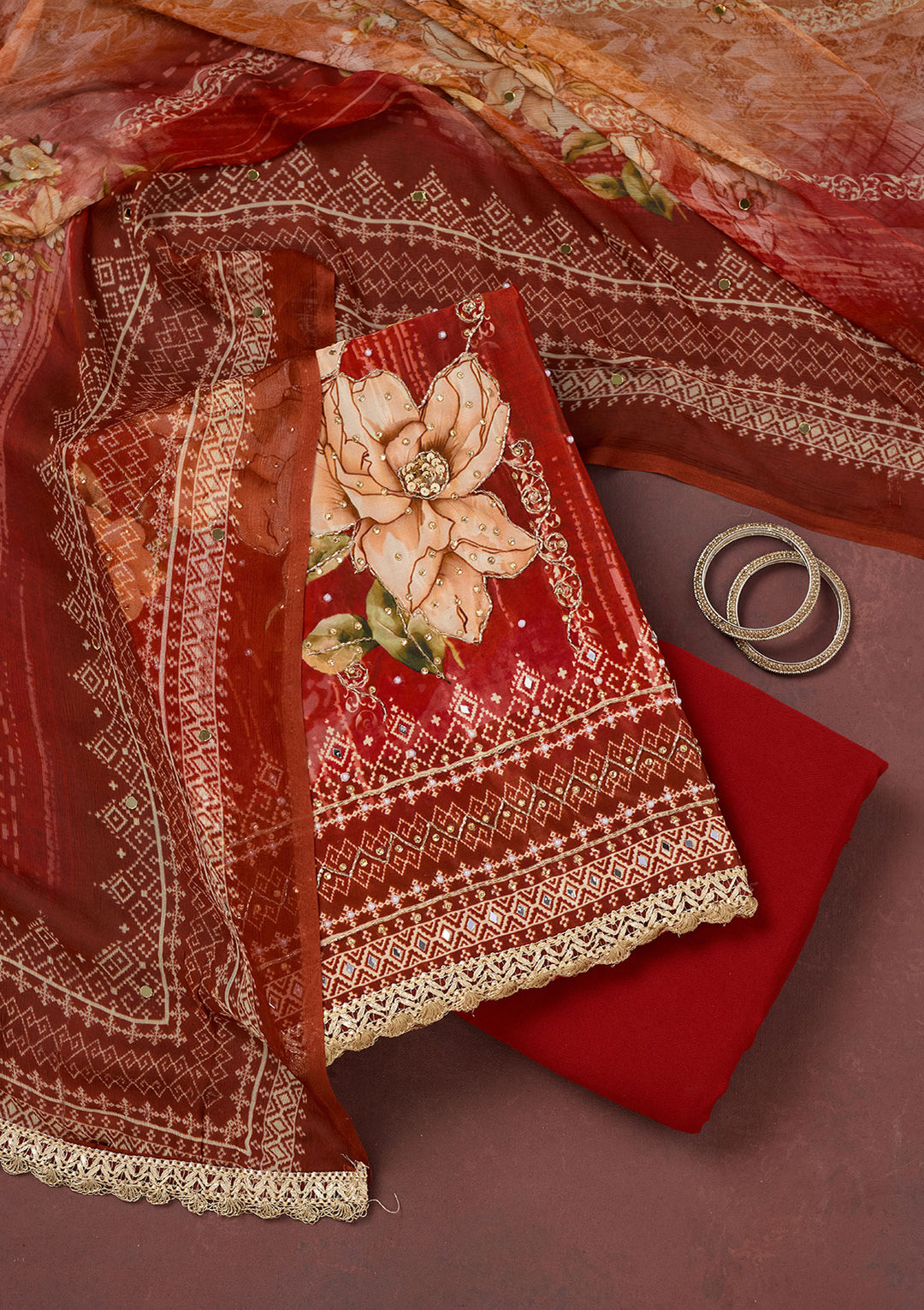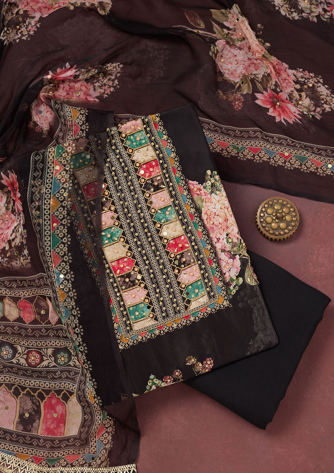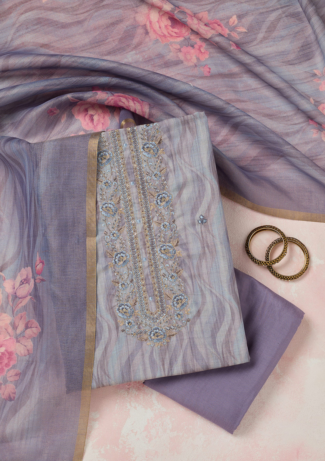 | Wine Threadwork Organza Unstitched Salwar Suit | ₹ 2,392 | |