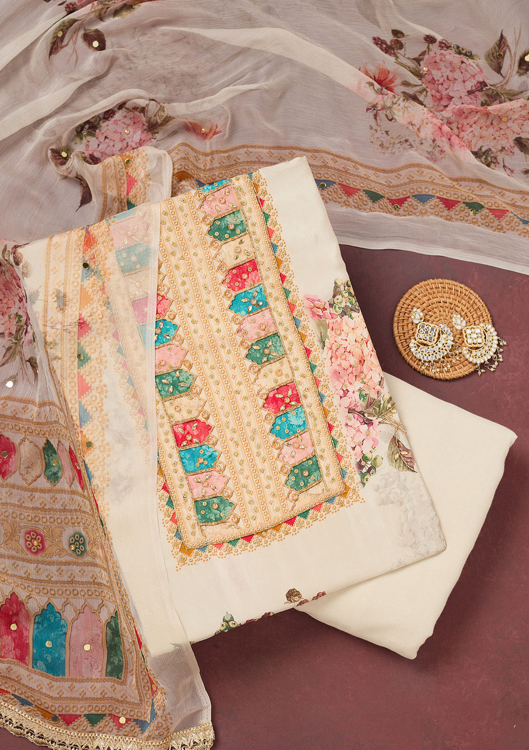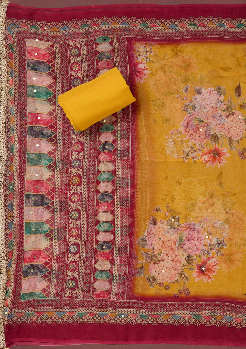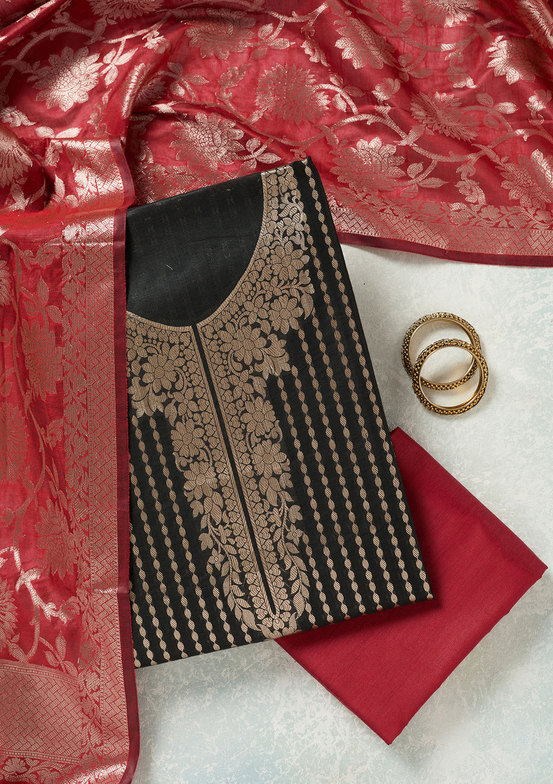 | Wine Threadwork Organza Unstitched Salwar Suit | ₹ 2,392 | |