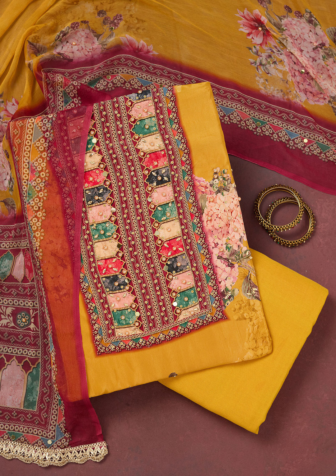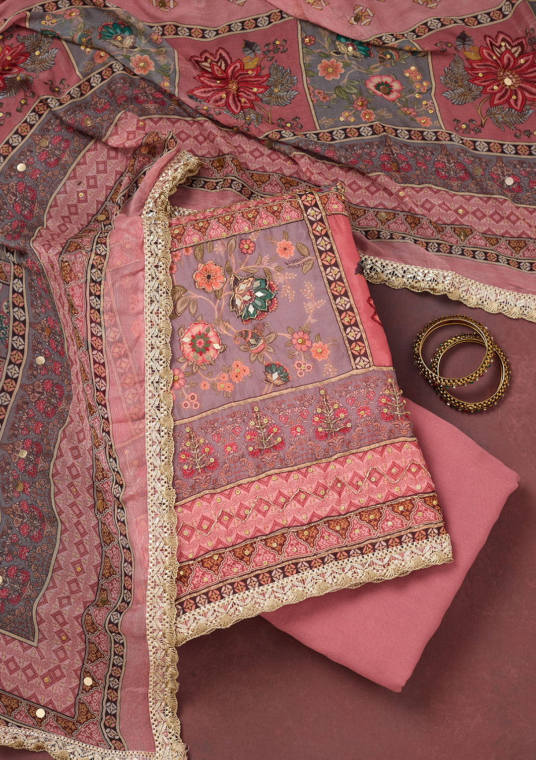 | Pink Zariwork (Gold) Cotton Unstitched Salwar Suit | ₹ 1,992 | |