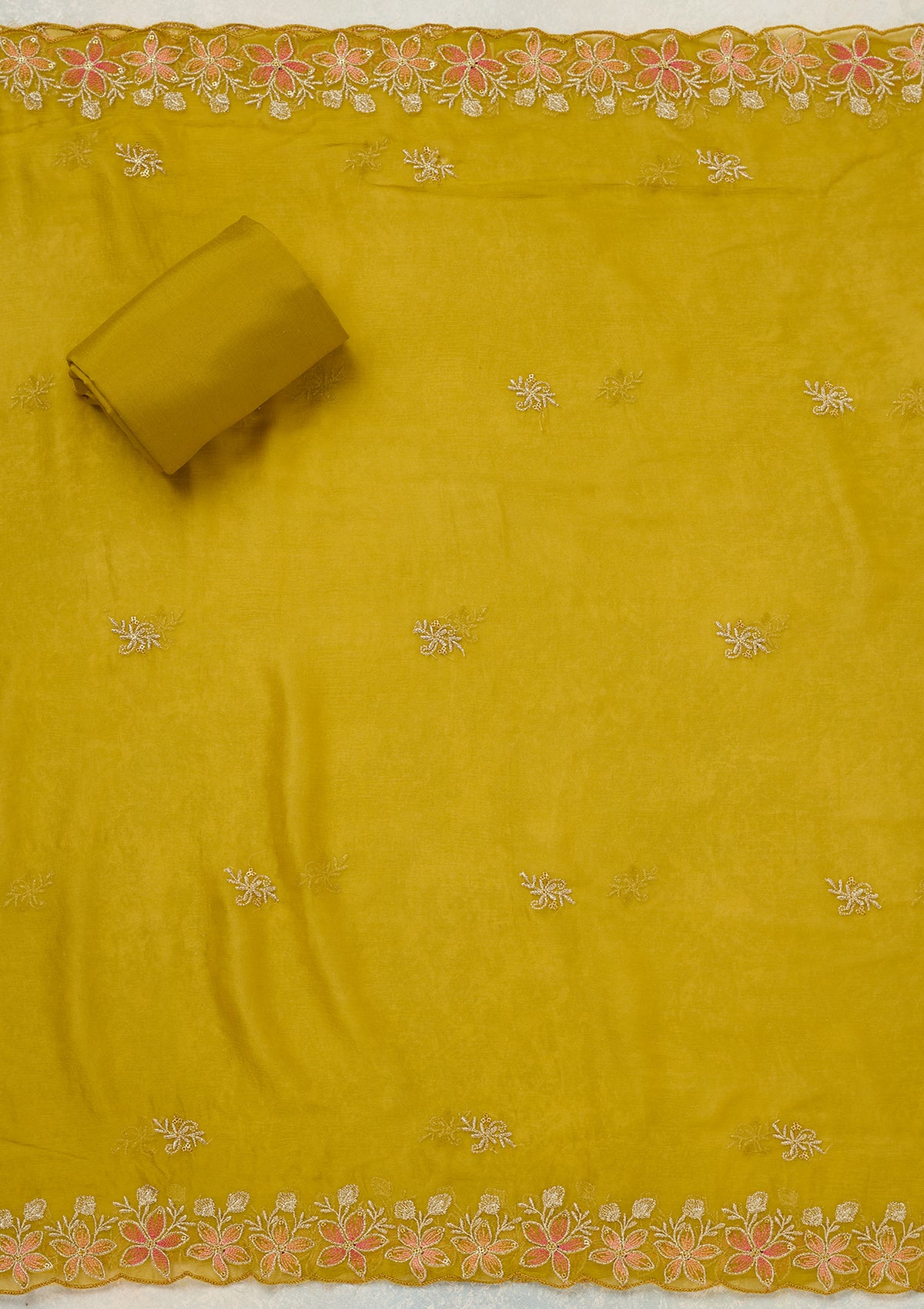 Mehendi Threadwork Semi Crepe Unstitched Salwar Suit