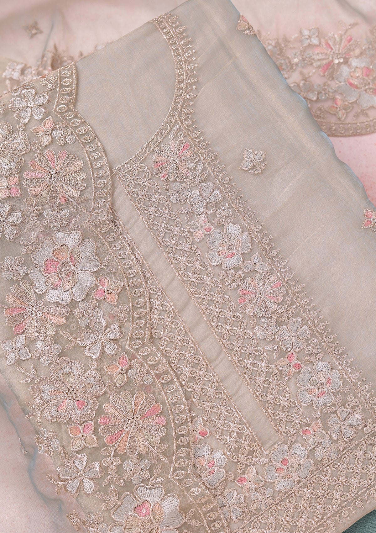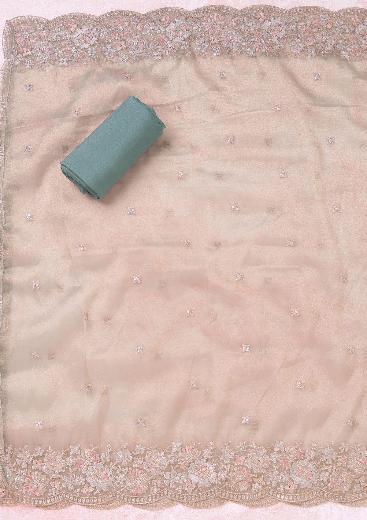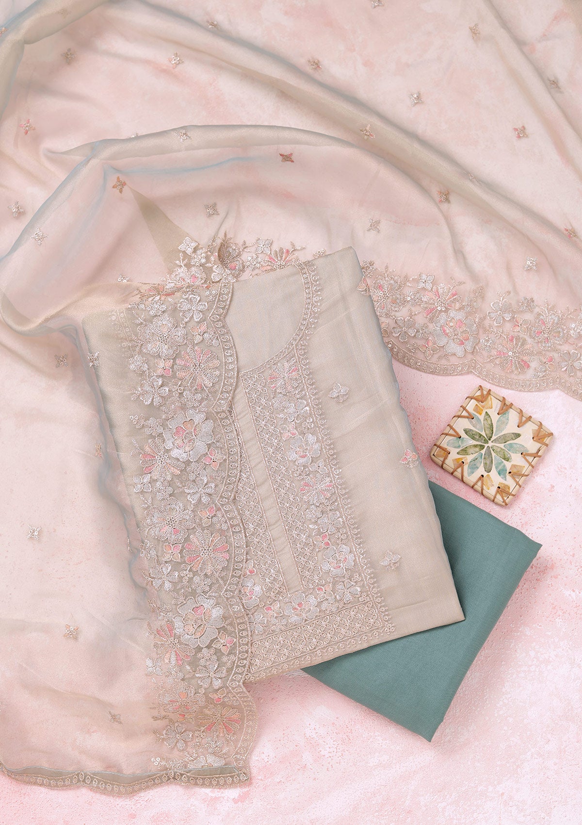 Turquoise Blue Zariwork (Gold) Tissue Unstitched Salwar Suit