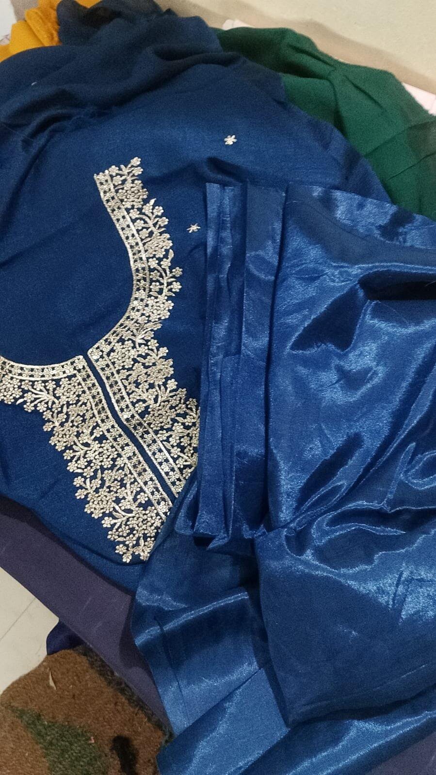 Royal Blue Zariwork Soft Raw Silk Unstitched Salwar Suit