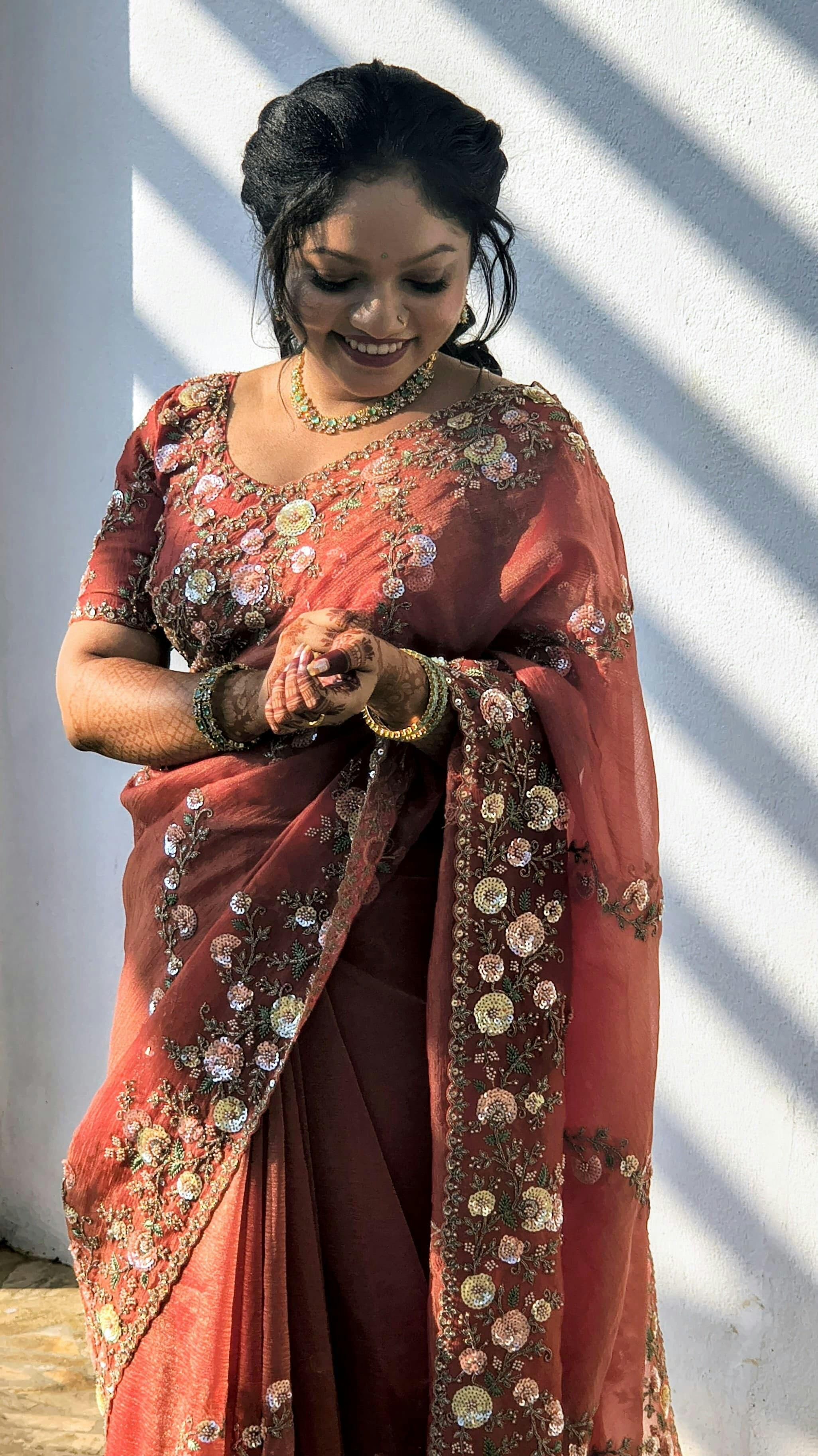 Rust Sequins Tissue Saree