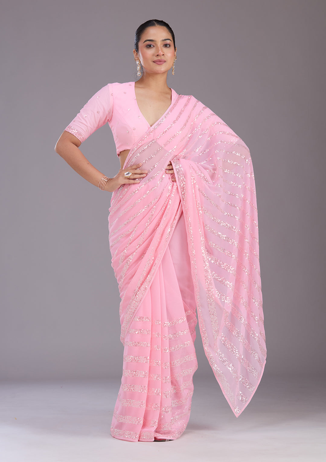 | Baby Pink Sequins Tissue Saree | ₹ 6,392 | |