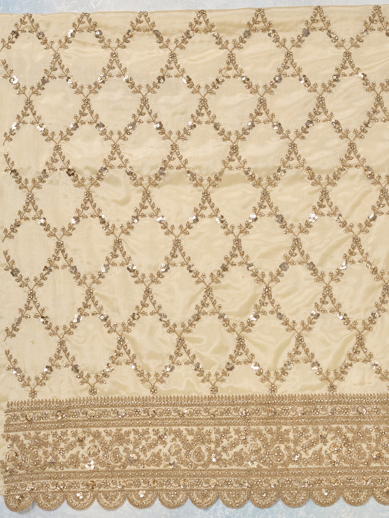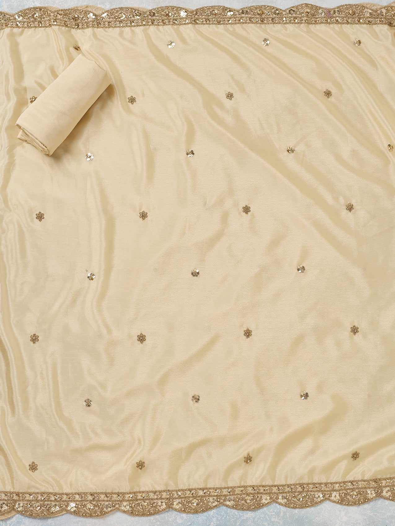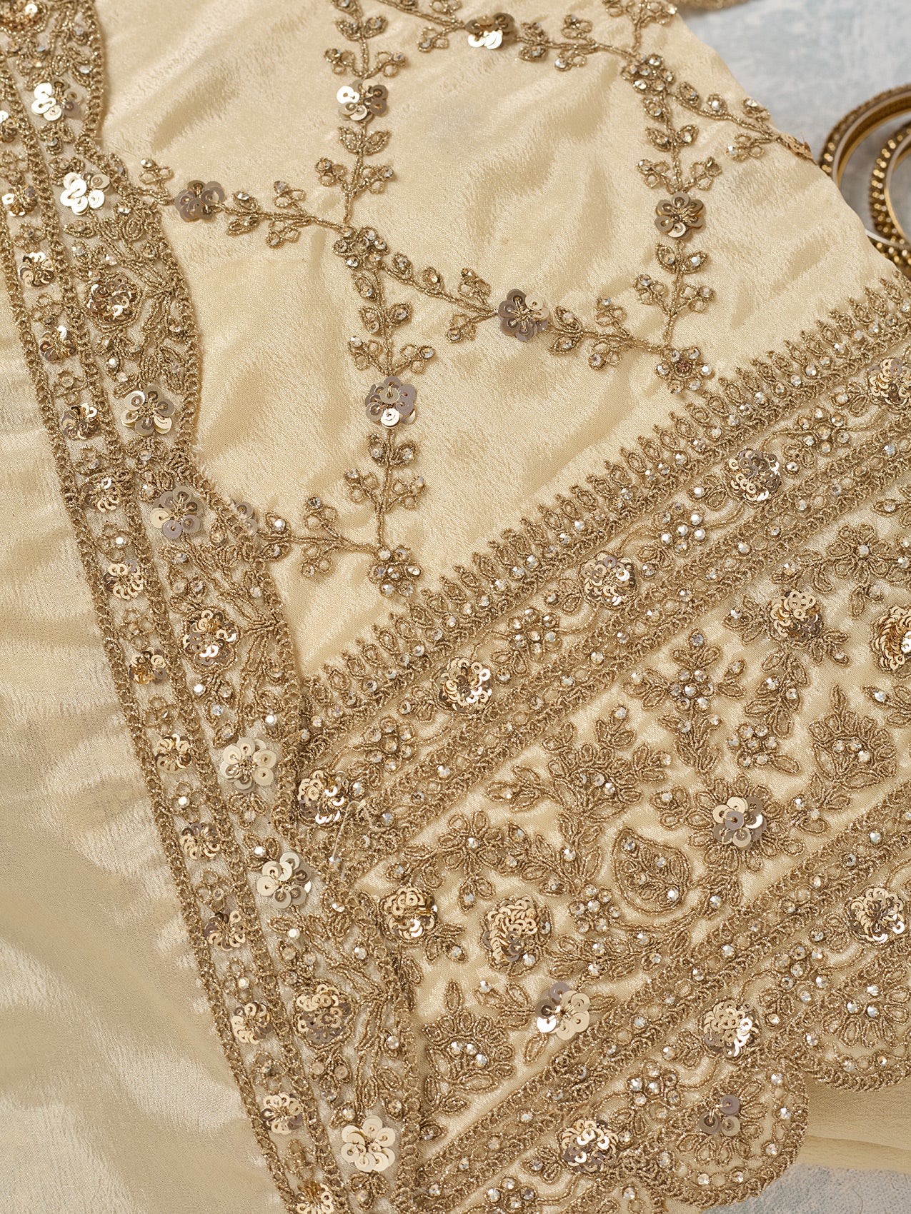 Cream Zariwork (Gold) Chinon Unstitched Salwar Suit