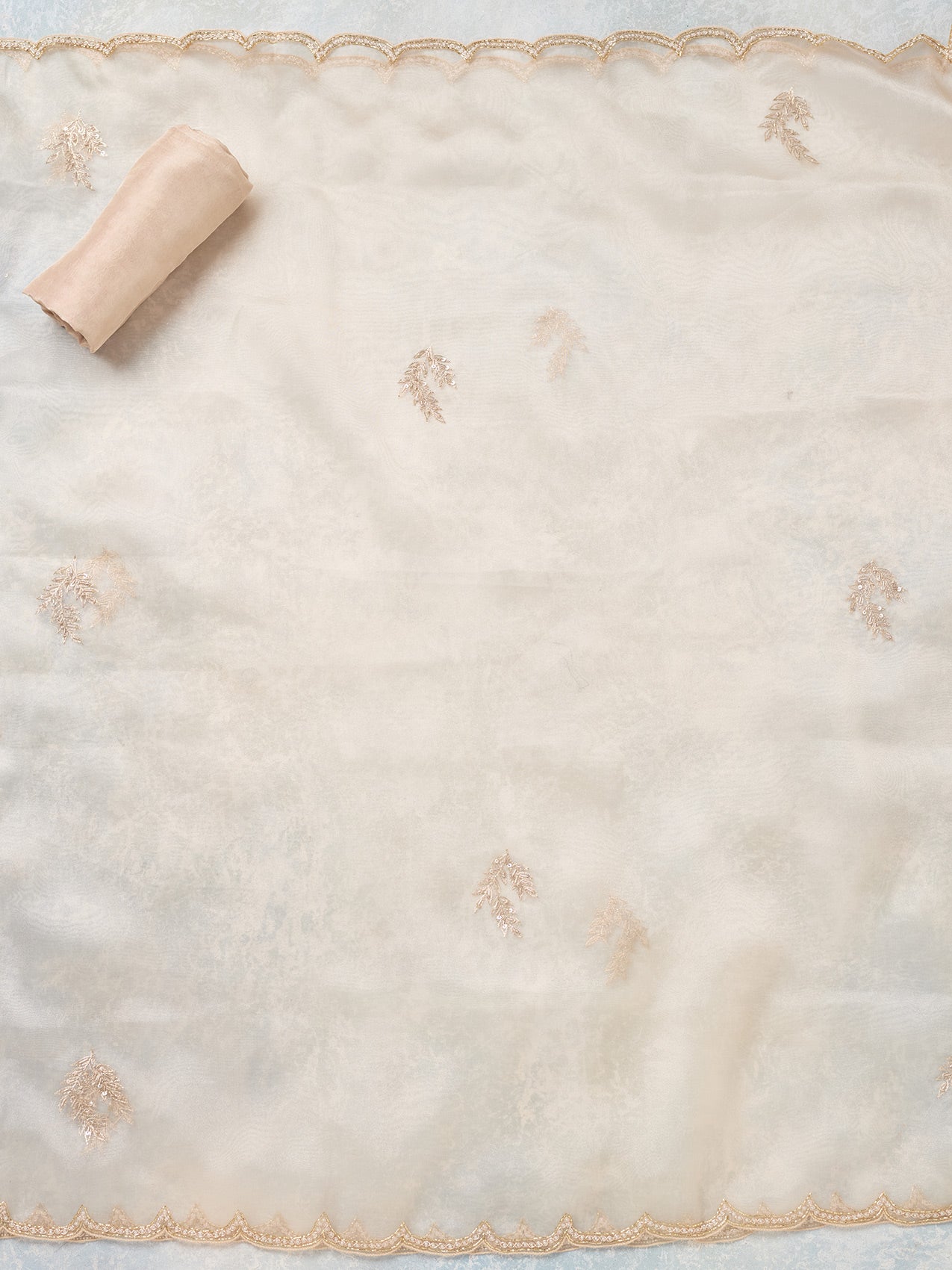 Off White Zardozi (Gold) Organza Unstitched Salwar Suit