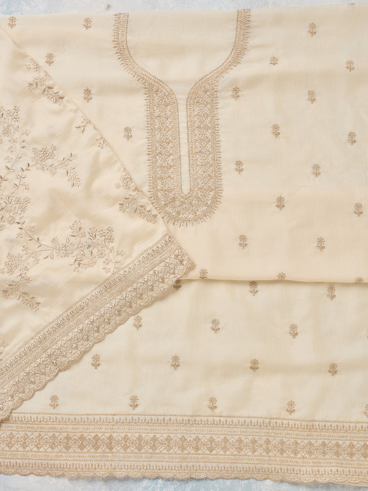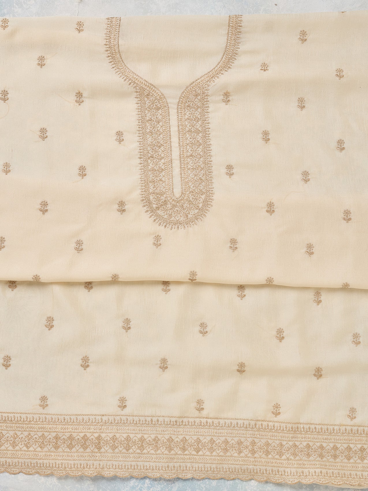 Off White Zariwork (Gold) Soft Raw Silk Unstitched Salwar Suit