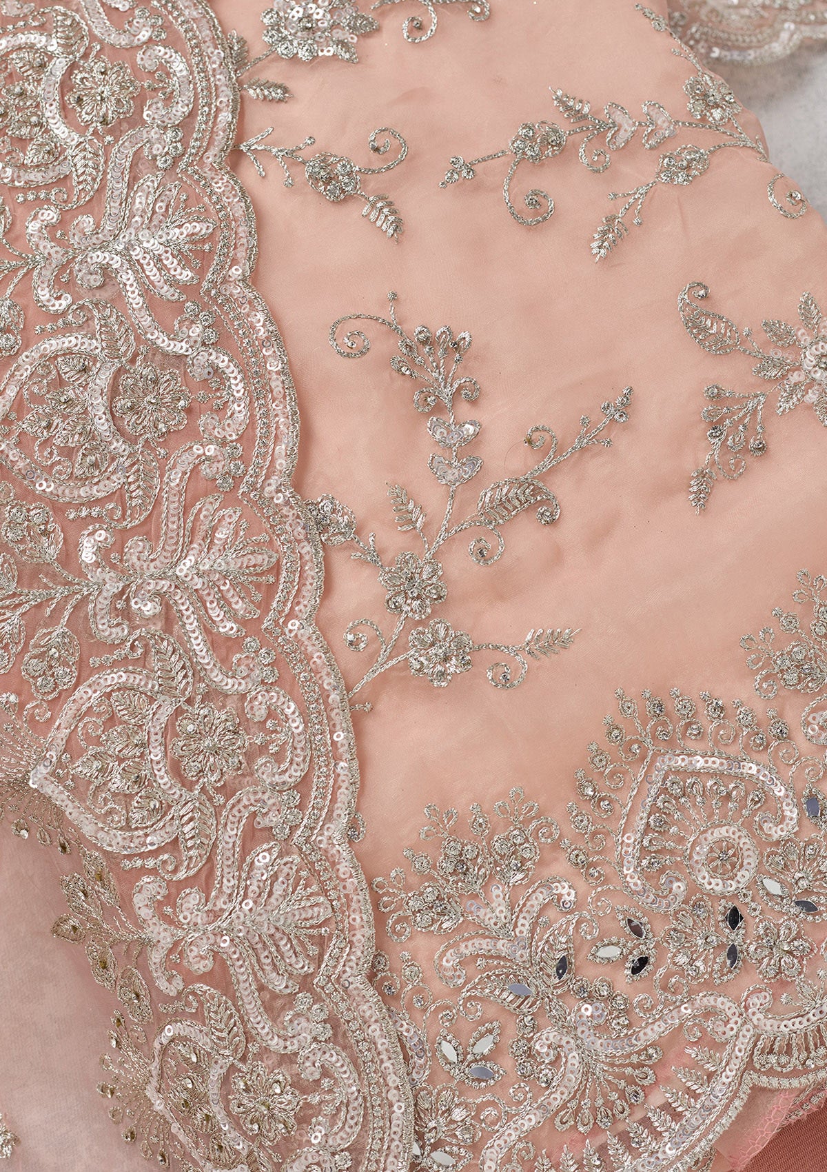 Peach Threadwork Tissue Unstitched Salwar Suit
