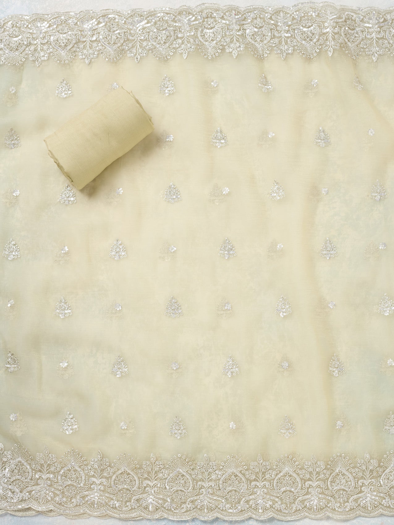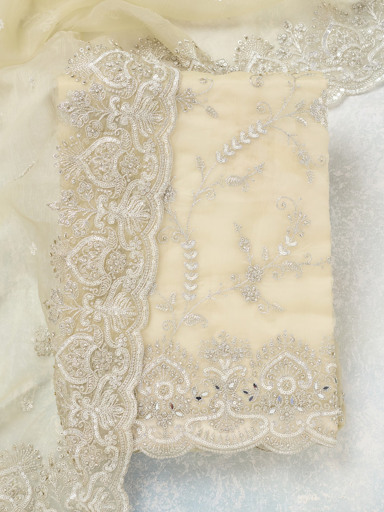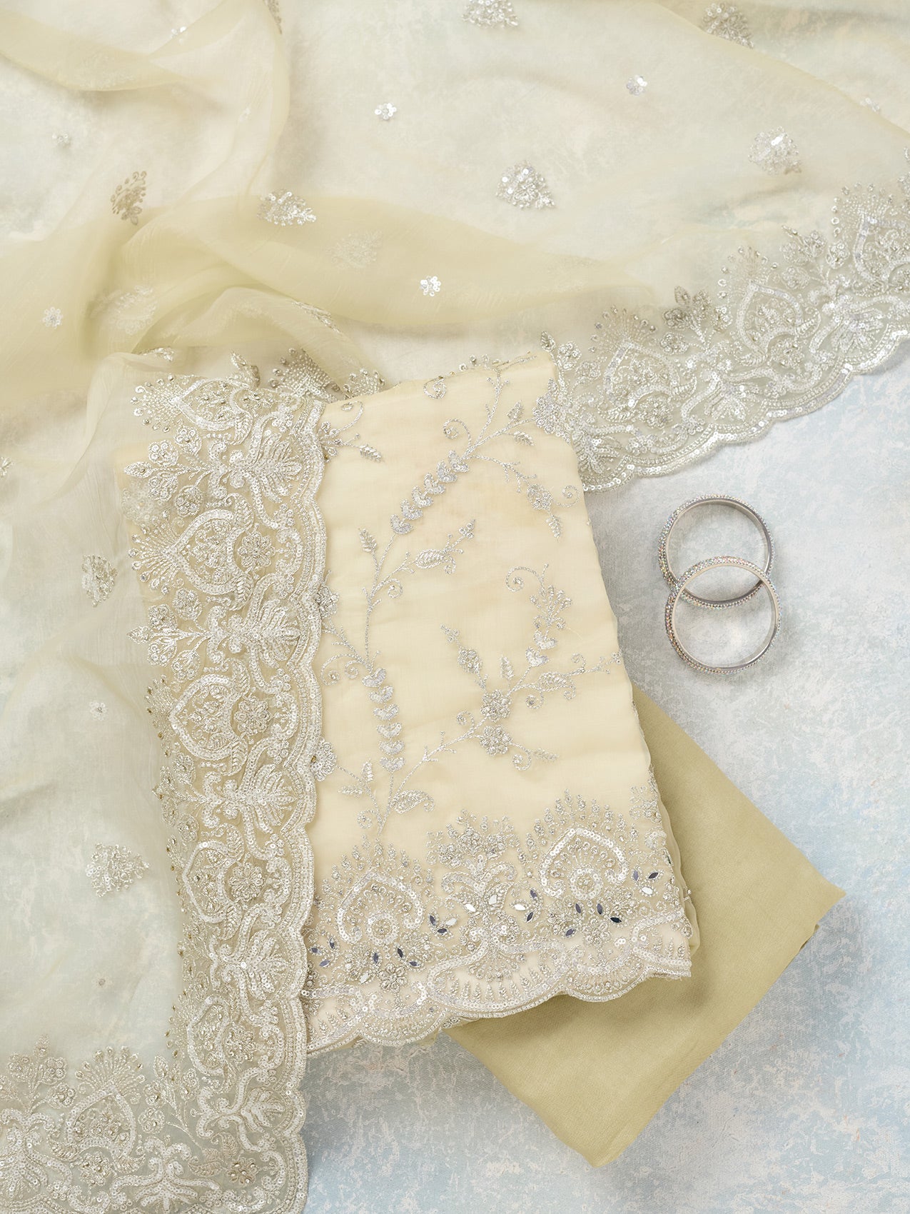 Pista Green Threadwork Tissue Unstitched Salwar Suit