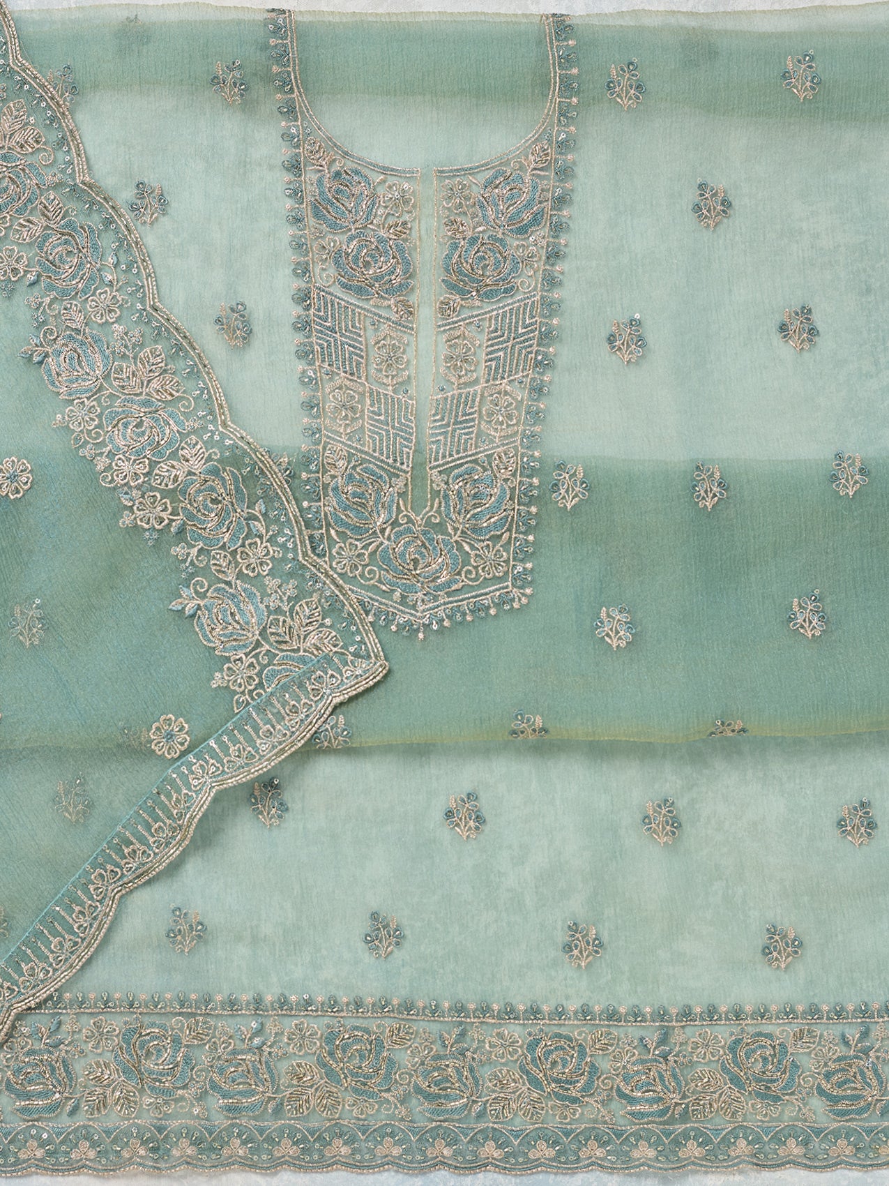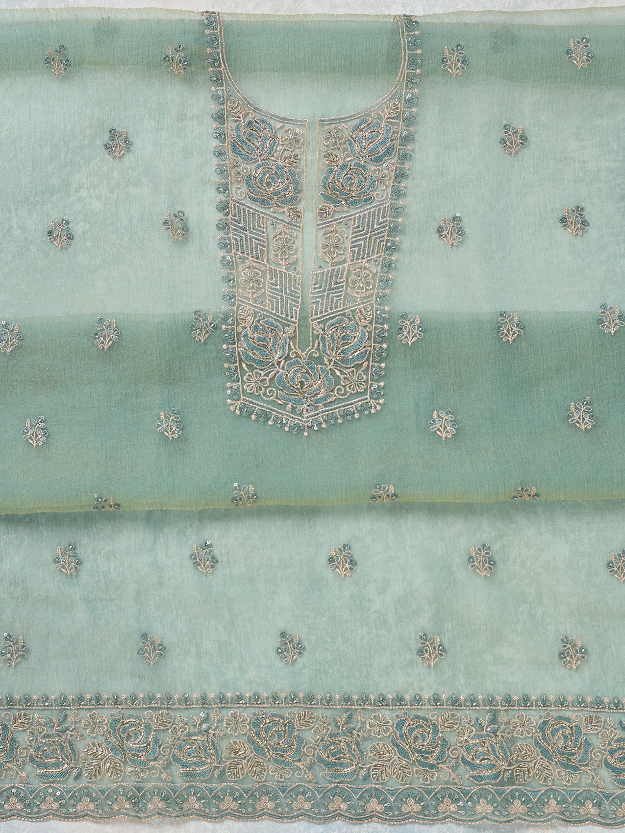 Sky Blue Threadwork Tissue Unstitched Salwar Suit