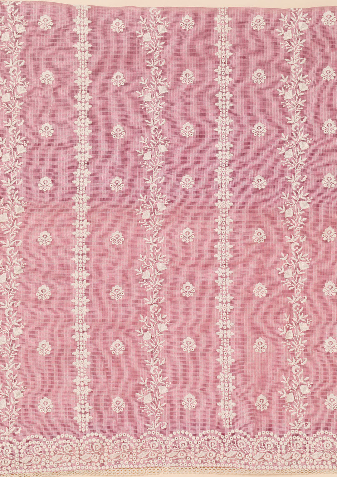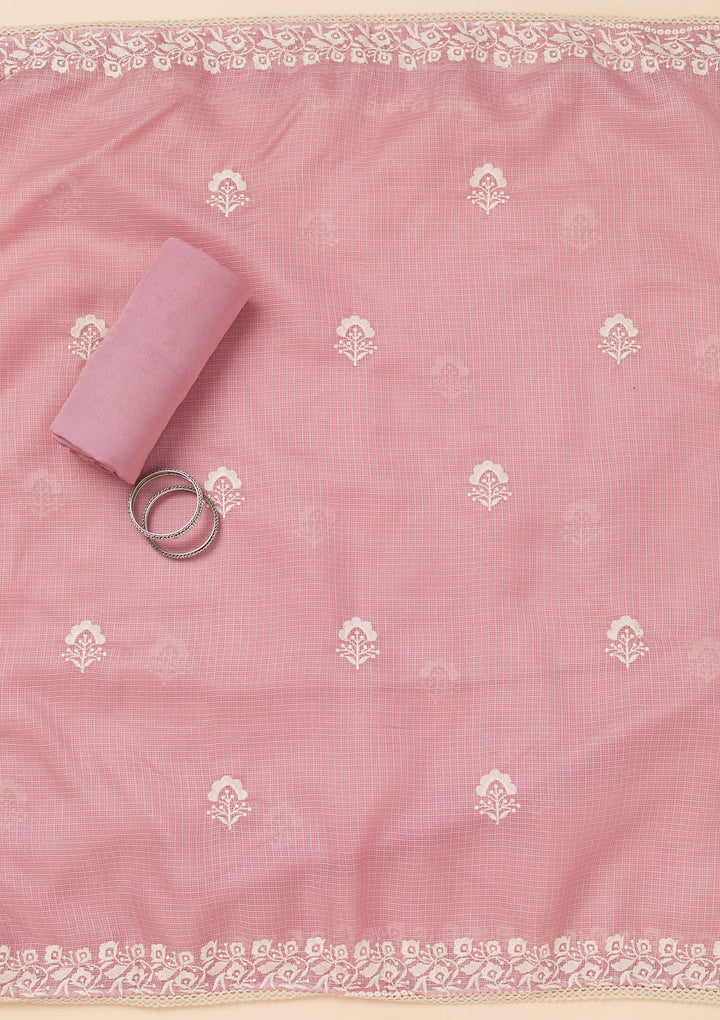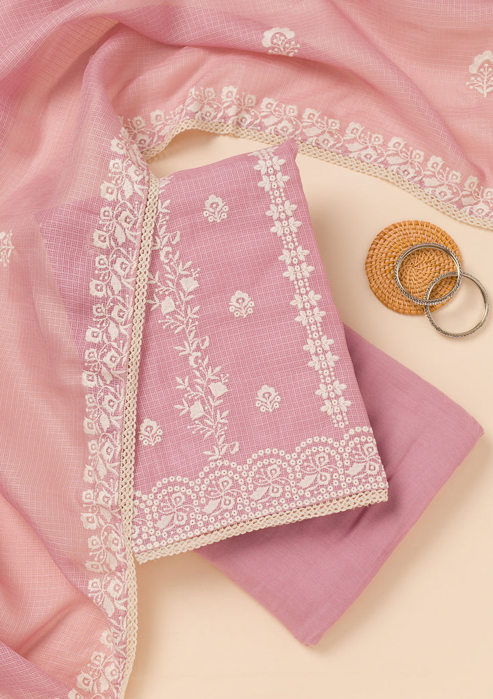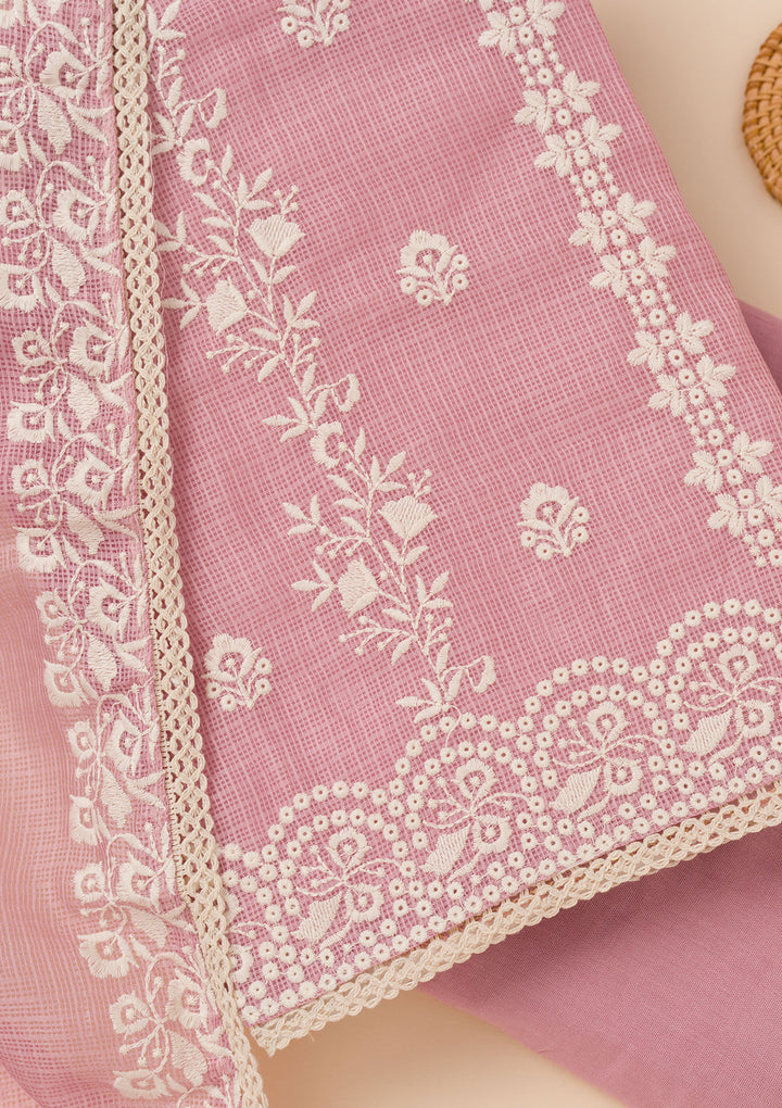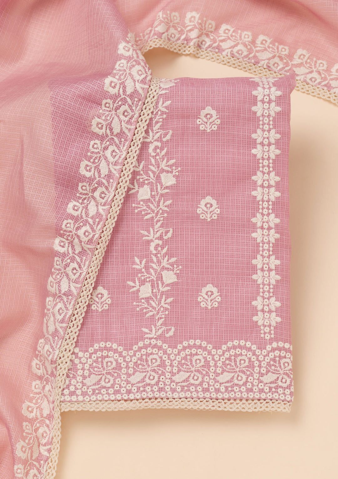 Onion Pink Threadwork Cotton Blend Unstitched Salwar Suit