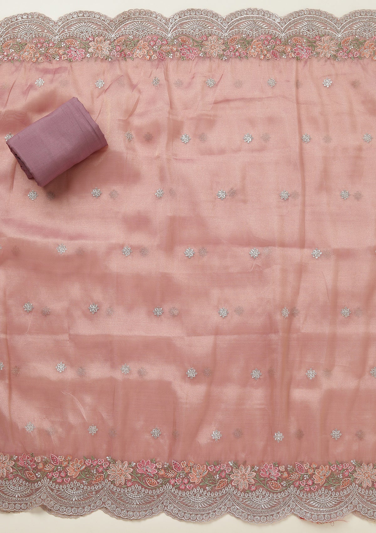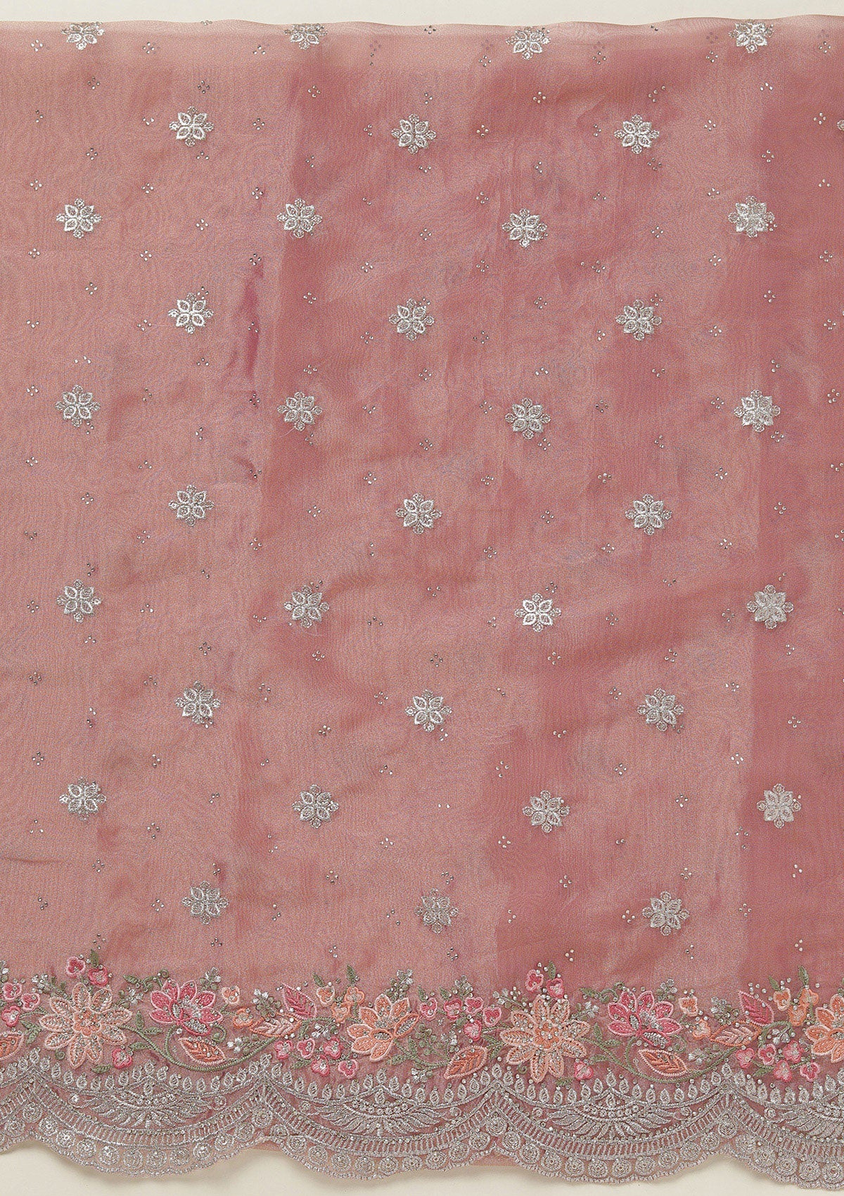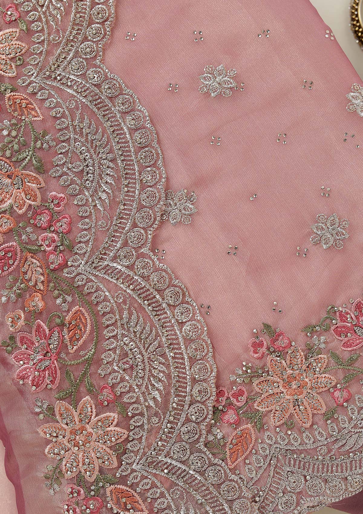 Onion Pink Threadwork Tissue Unstitched Salwar Suit