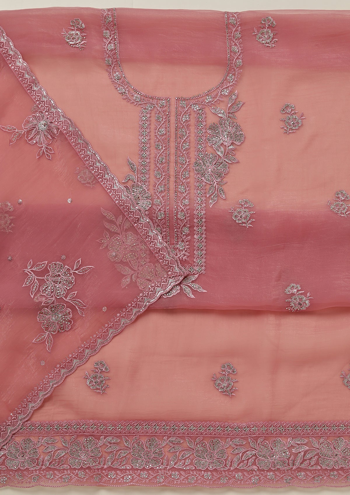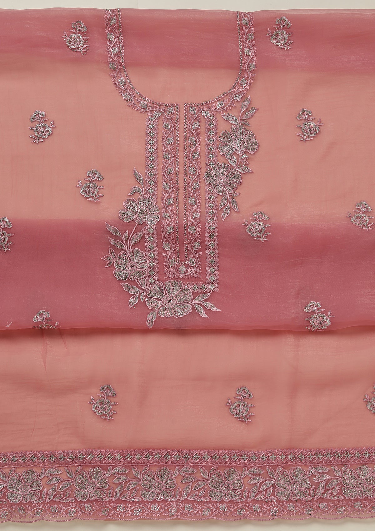Onion Pink Threadwork Tissue Unstitched Salwar Suit