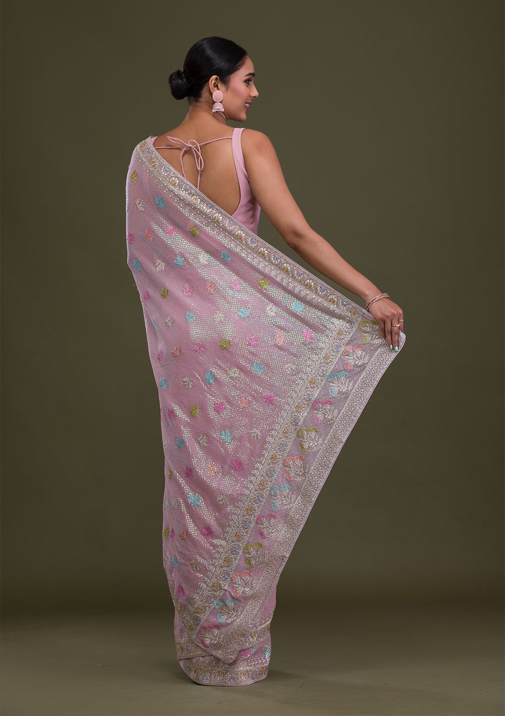 Dive into the world of vibrant elegance with Koskii’s Lavender Georgette Saree, a masterpiece adorned with exquisite zari embroidery. This breezy georgette delight, rich in tradition and shimmering with modern flair, promises you the spotlight at every turn. Ready to drape and destined to dazzle, this saree is your perfect pick for making every moment joyful and radiant!.