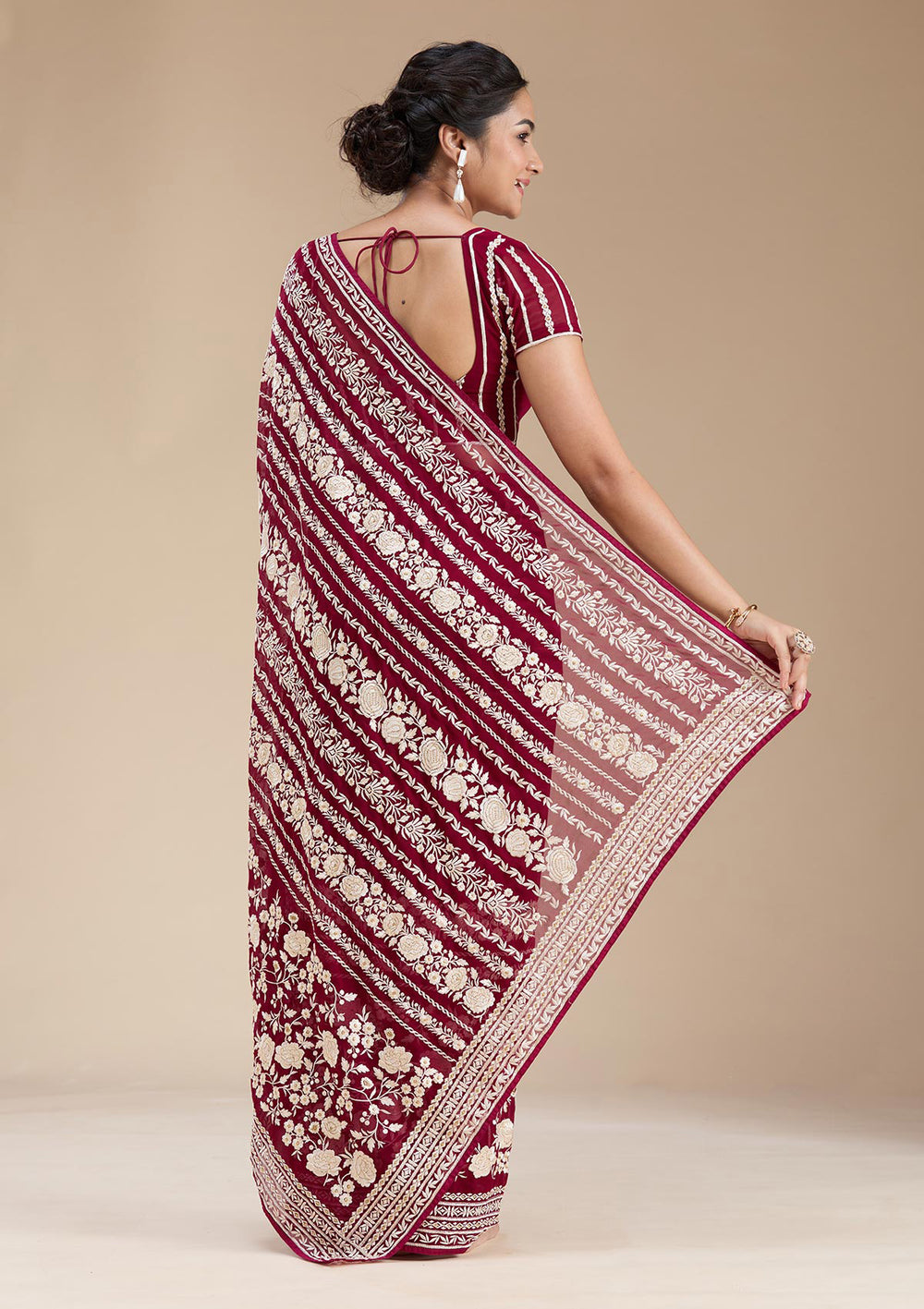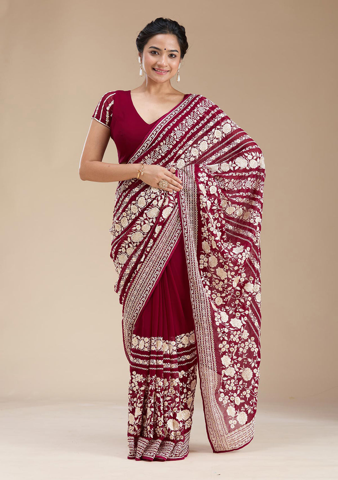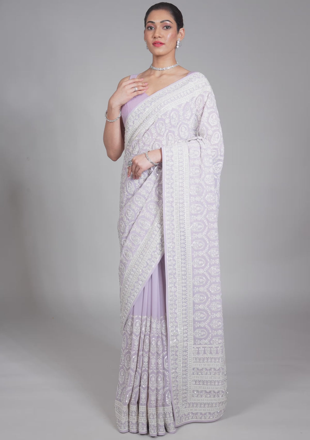 | Peacock Blue Threadwork Georgette Saree | ₹ 5,192 | |