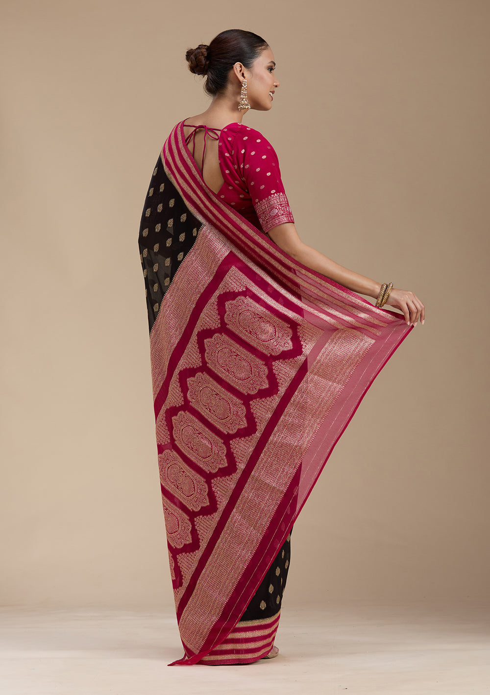 | Navy Blue Zariwork (Gold) Organza Saree | ₹ 7,592 | |