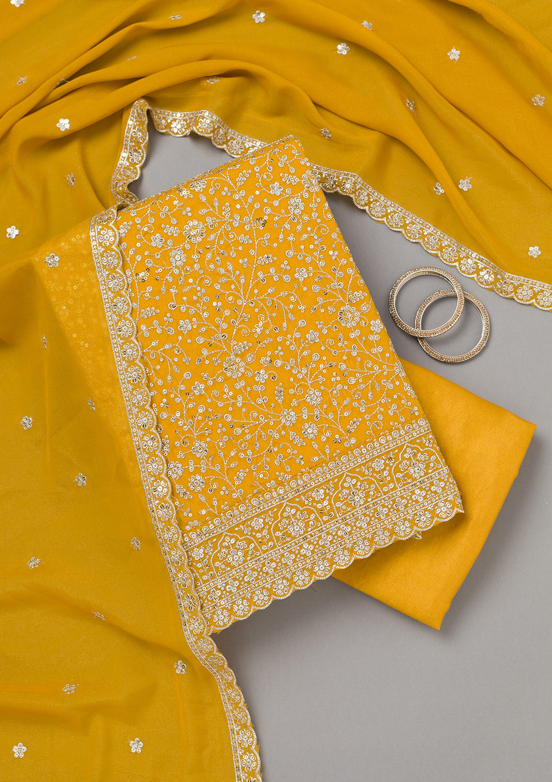 | Mustard Threadwork Georgette Unstitched Salwar Suit | ₹ 2,792 | |