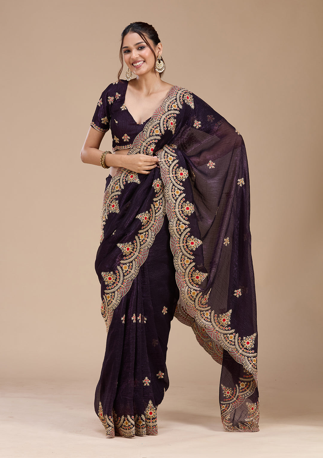| Wine Threadwork Georgette Saree | ₹ 7,592 | |