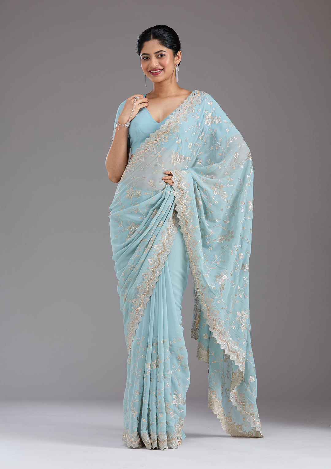 | Teal Green Cording Georgette Saree | ₹ 3,992 | |