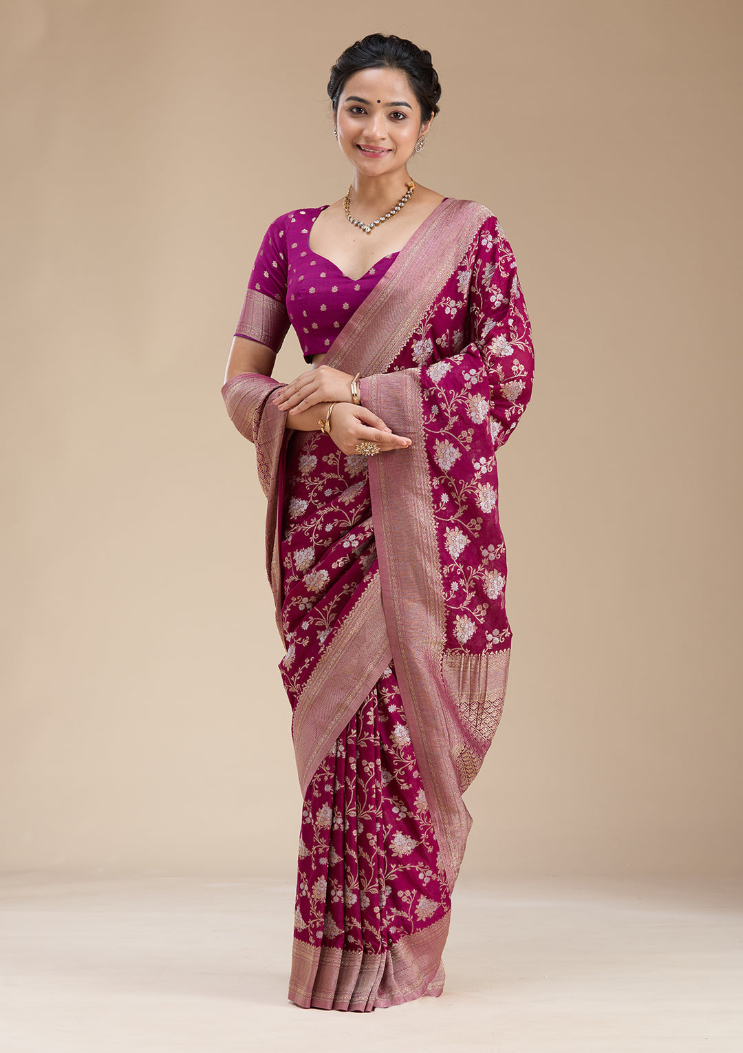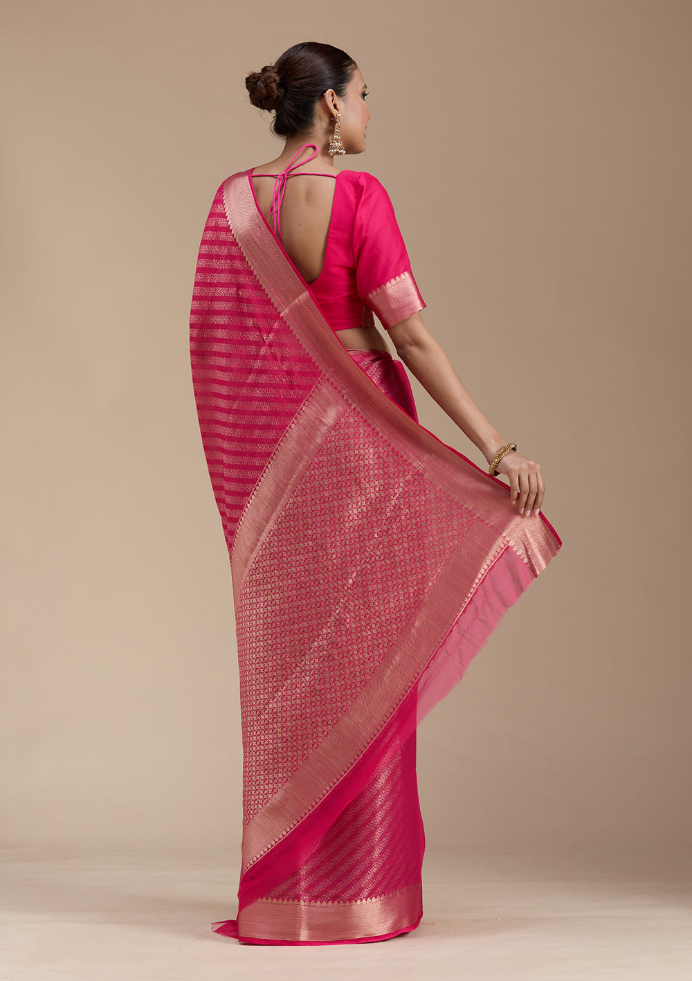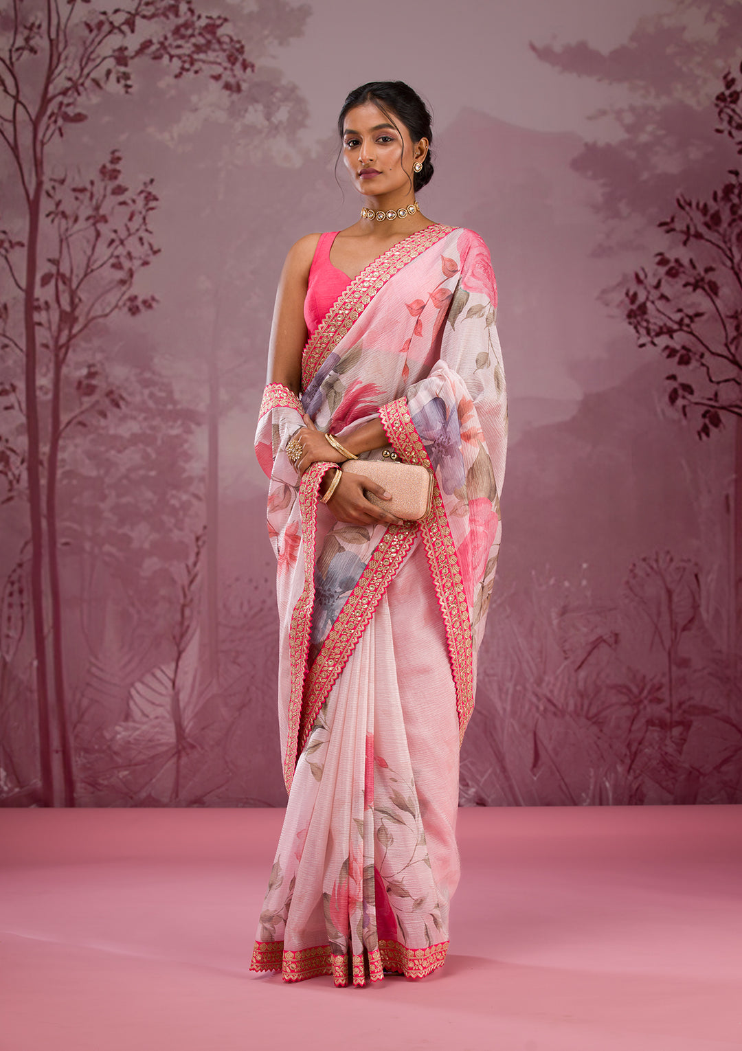 | Rani Pink Cording Chinon Saree | ₹ 5,192 | |