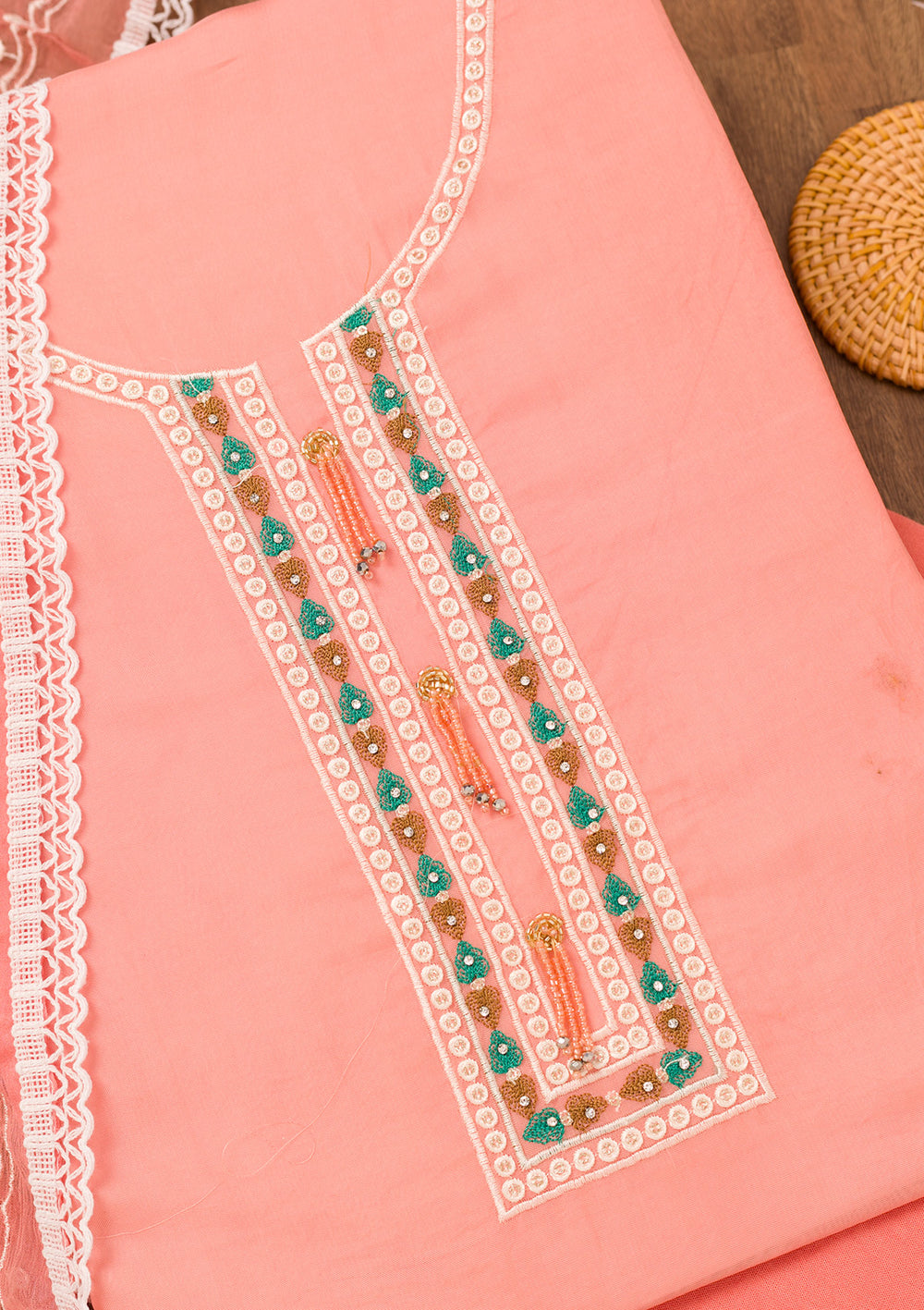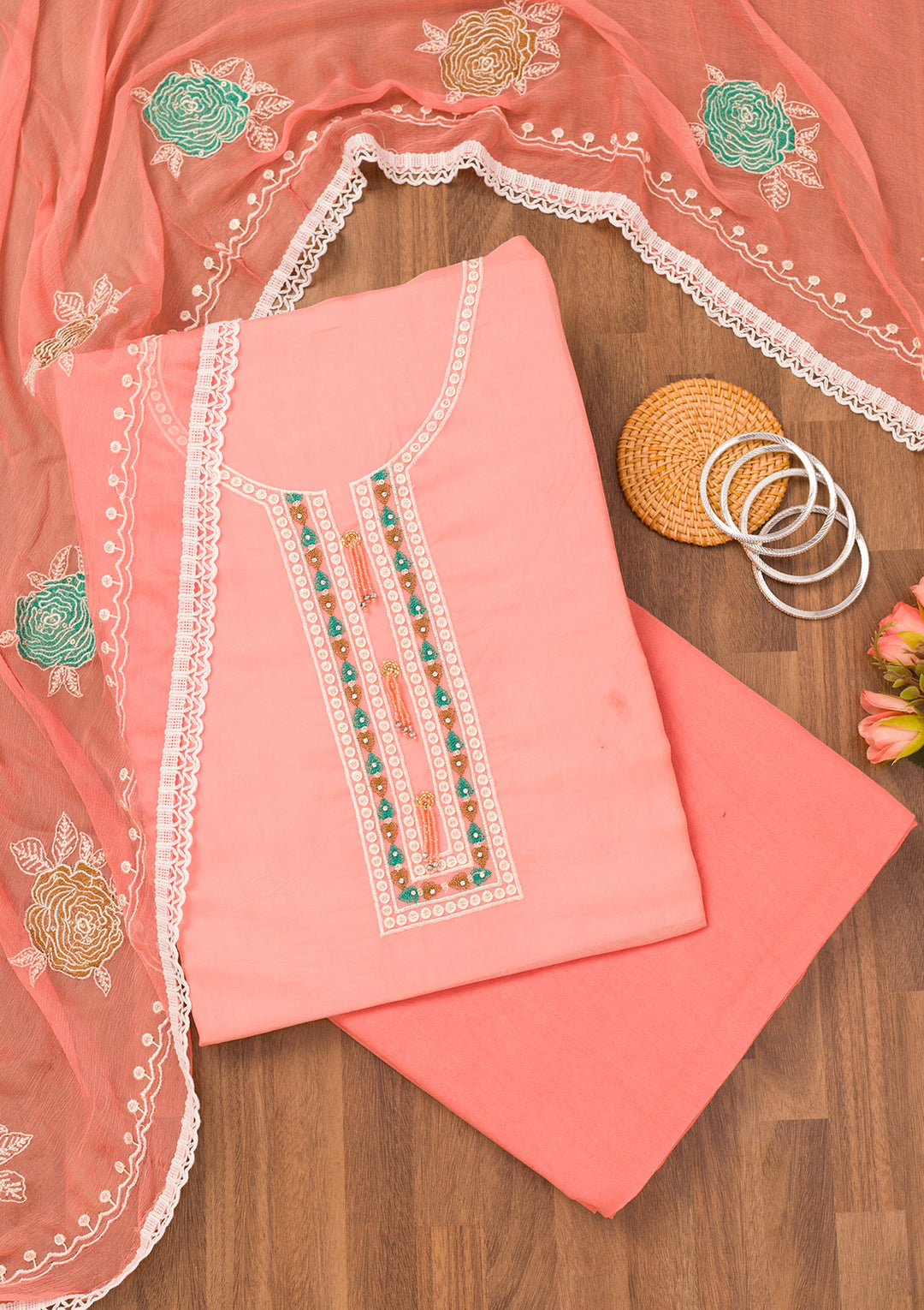 | Peach Threadwork Georgette Unstitched Salwar Suit | ₹ 5,394 | |