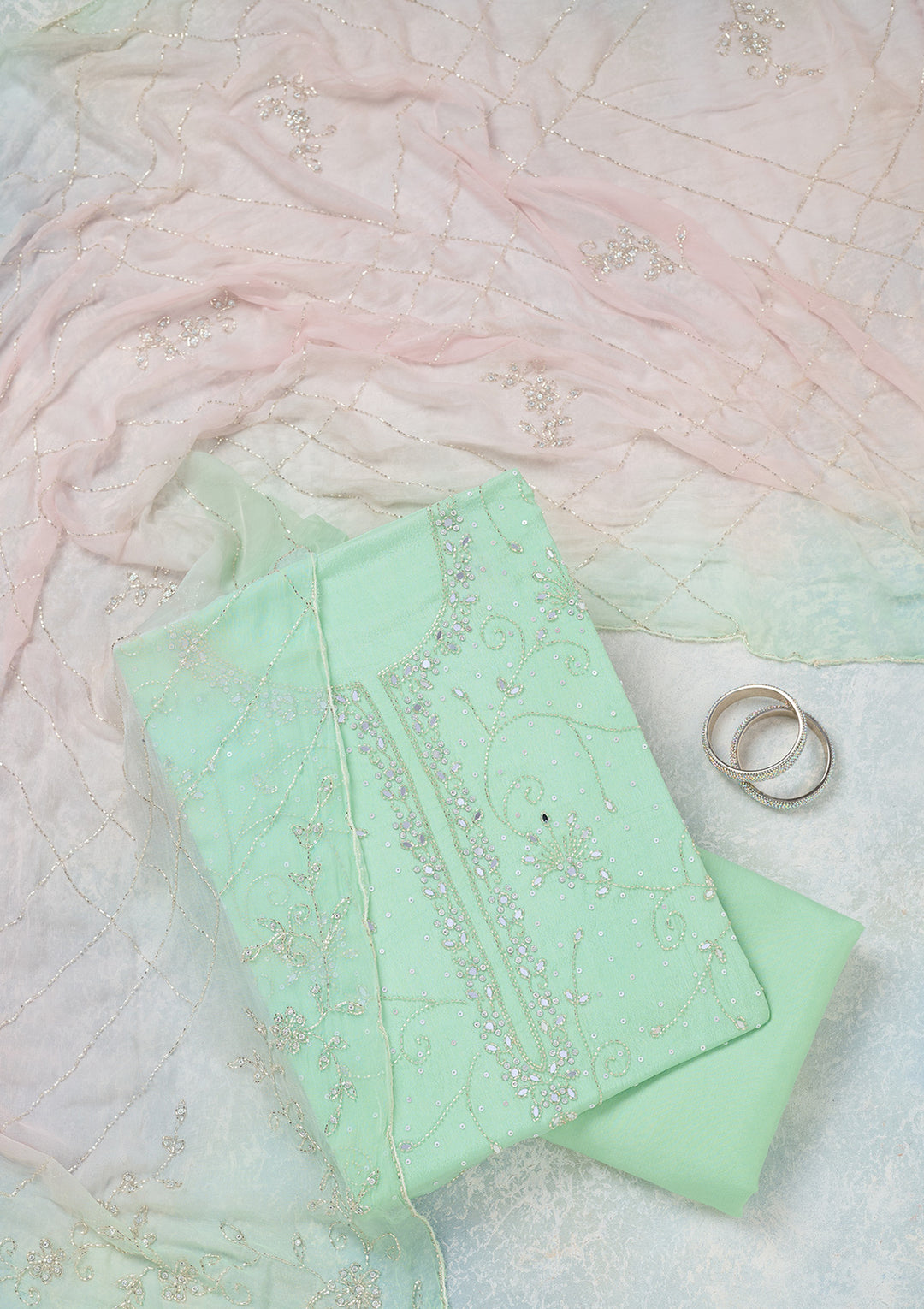 | Turquoise Blue Zariwork Georgette Unstitched Salwar Suit | ₹ 6,392 | |