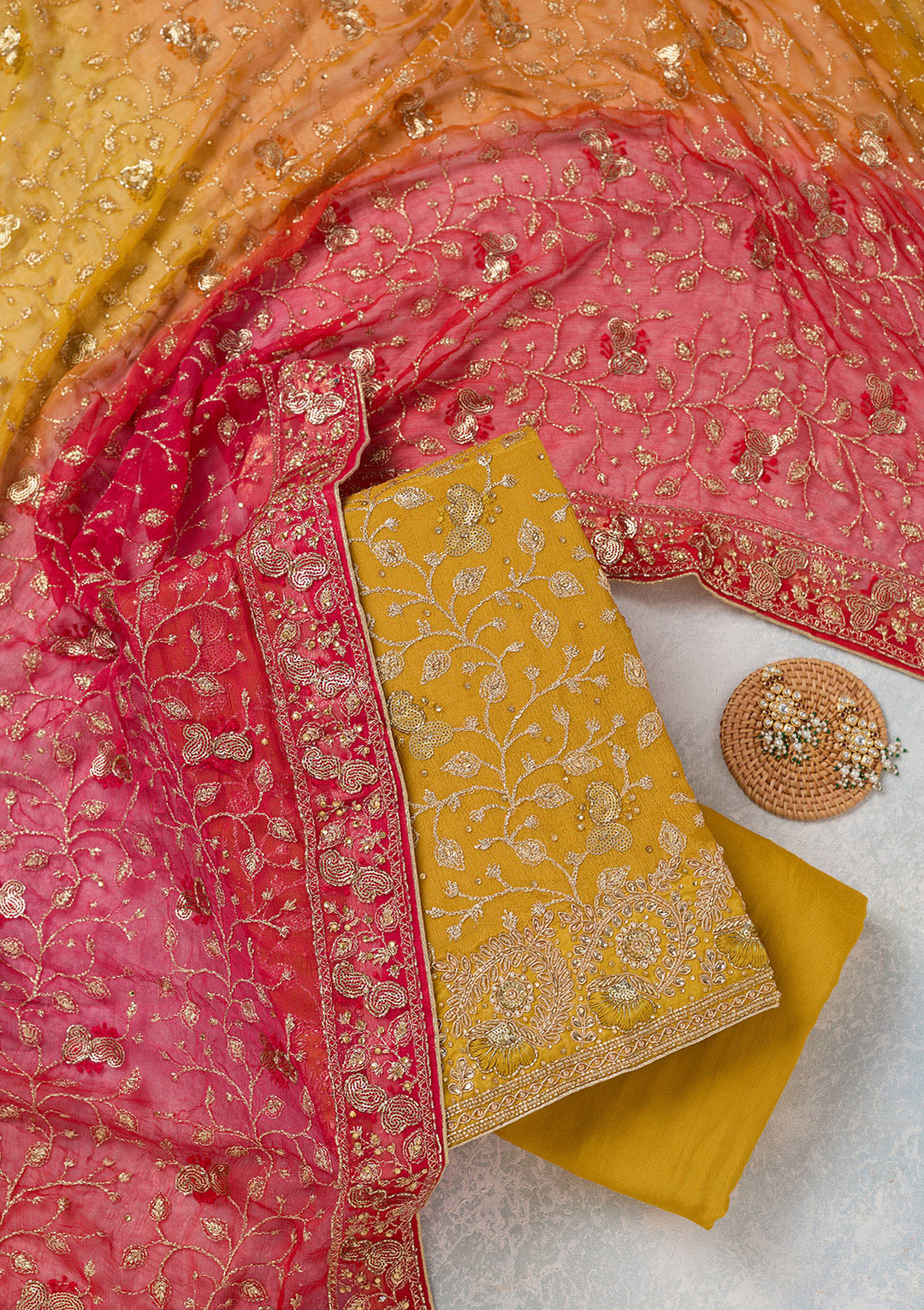 | Mustard Zariwork Georgette Unstitched Salwar Suit | ₹ 6,392 | |