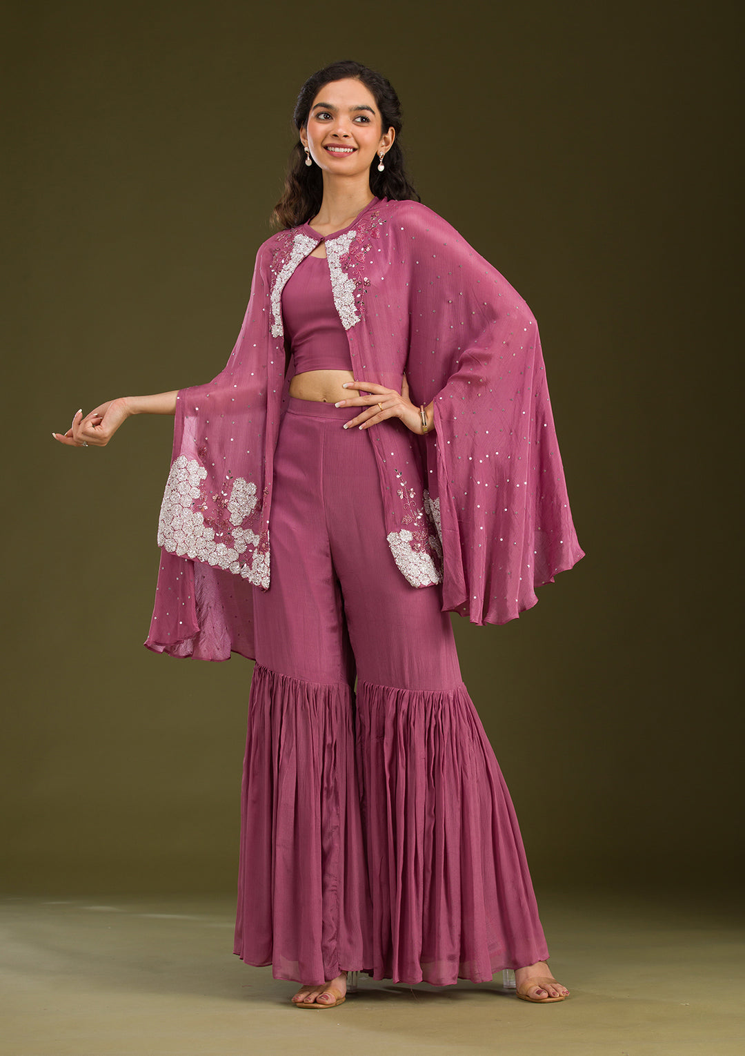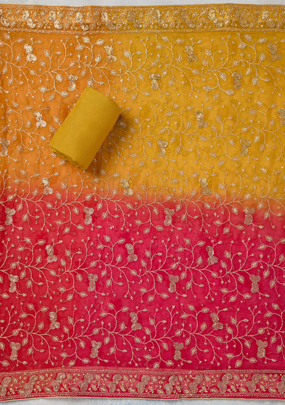 | Onion Pink Zardozi (Gold) Georgette Unstitched Salwar Suit | ₹ 6,392 | |