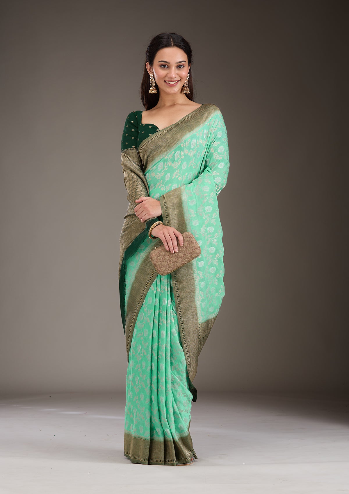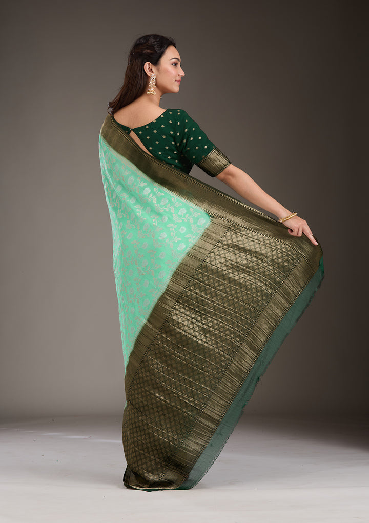 Sea Green Zariwork Georgette Saree