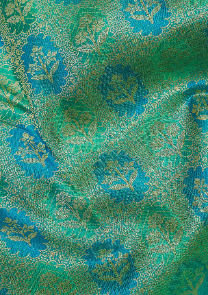 Parrot Green Saree in Pure Silk fabric. The Saree is elevated with Zariwork embroidery. It comes with an Unstitched blouse. Comes with the Koskii promise of premium quality.